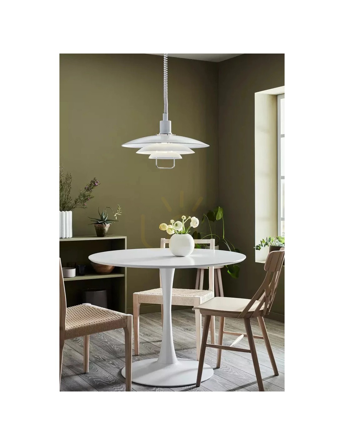 Avec son design sobre et fonctionnel, la suspension Kirkenes rappelle les lampes de cuisine traditionnelles.