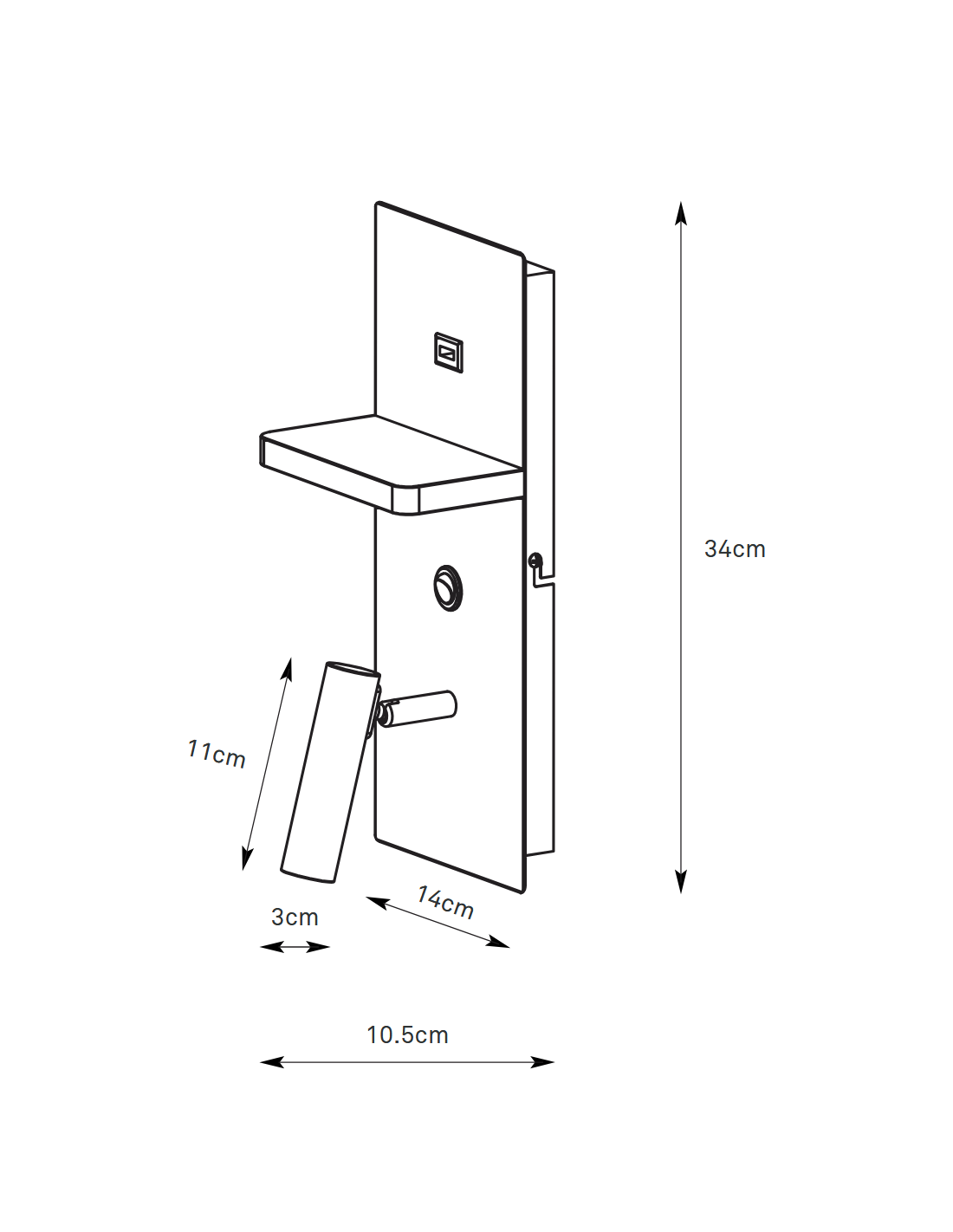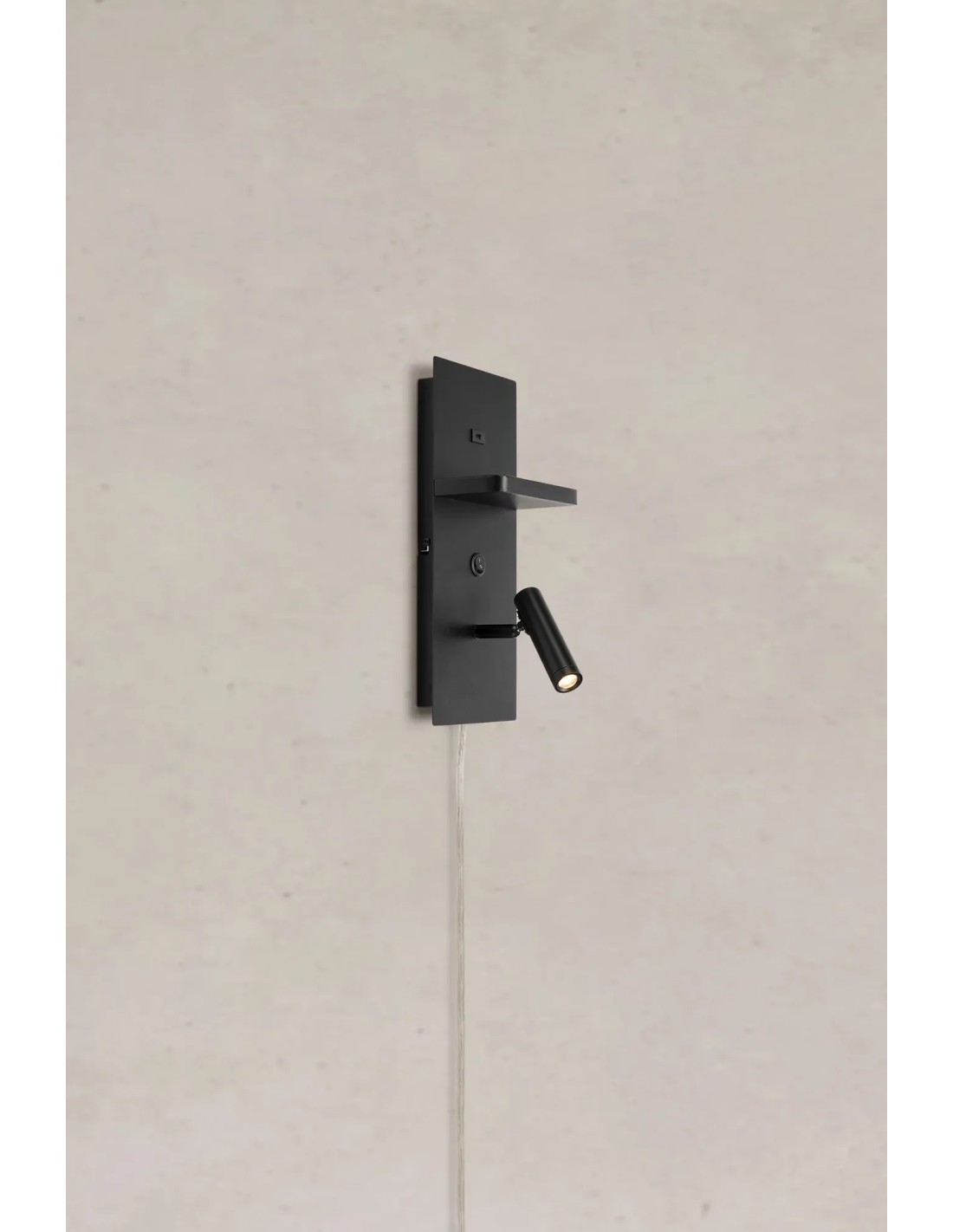 Applique murale Carica noire avec étagère port USB-C LED intégrée 4W liseuse orientable - Markslojd