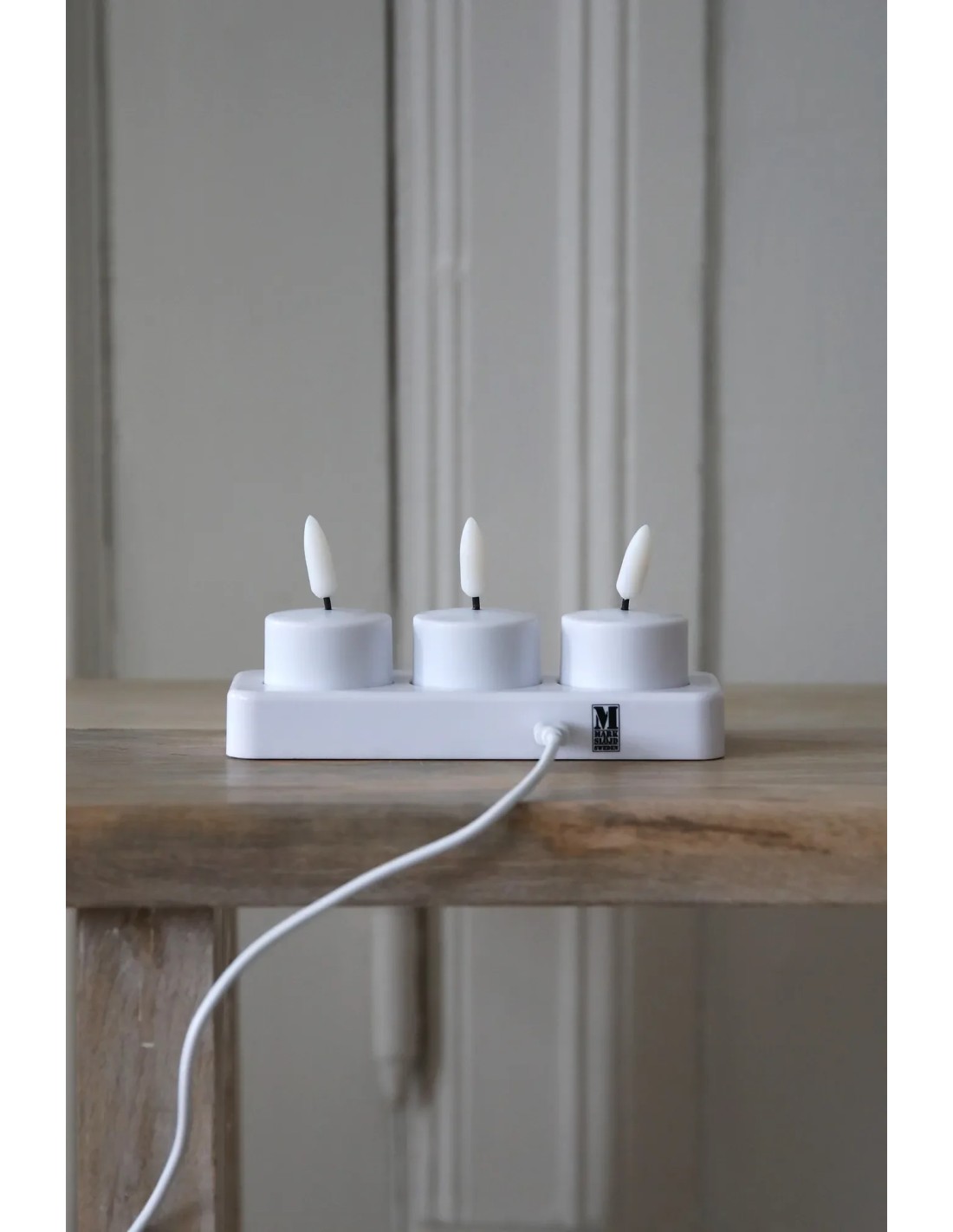 Lot de 3 bougies chauffe-plat LED rechargeables blanc télécommande USB-C effet flamme - Markslojd