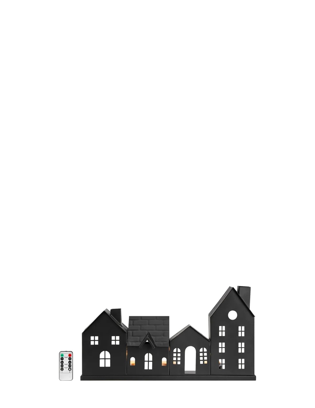 La décoration de table Wells de la marque Markslojd est conçue en fer noir mat avec un design en forme de façade de maison, à la fois décoratif et fonctionnel.