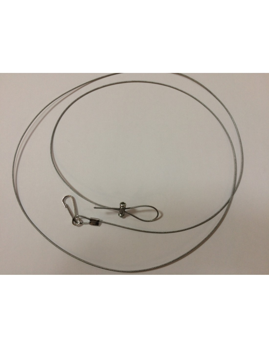 Le filin fait une longueur totale d'1,50 mètre (+/- 10%) avec un mousqueton.