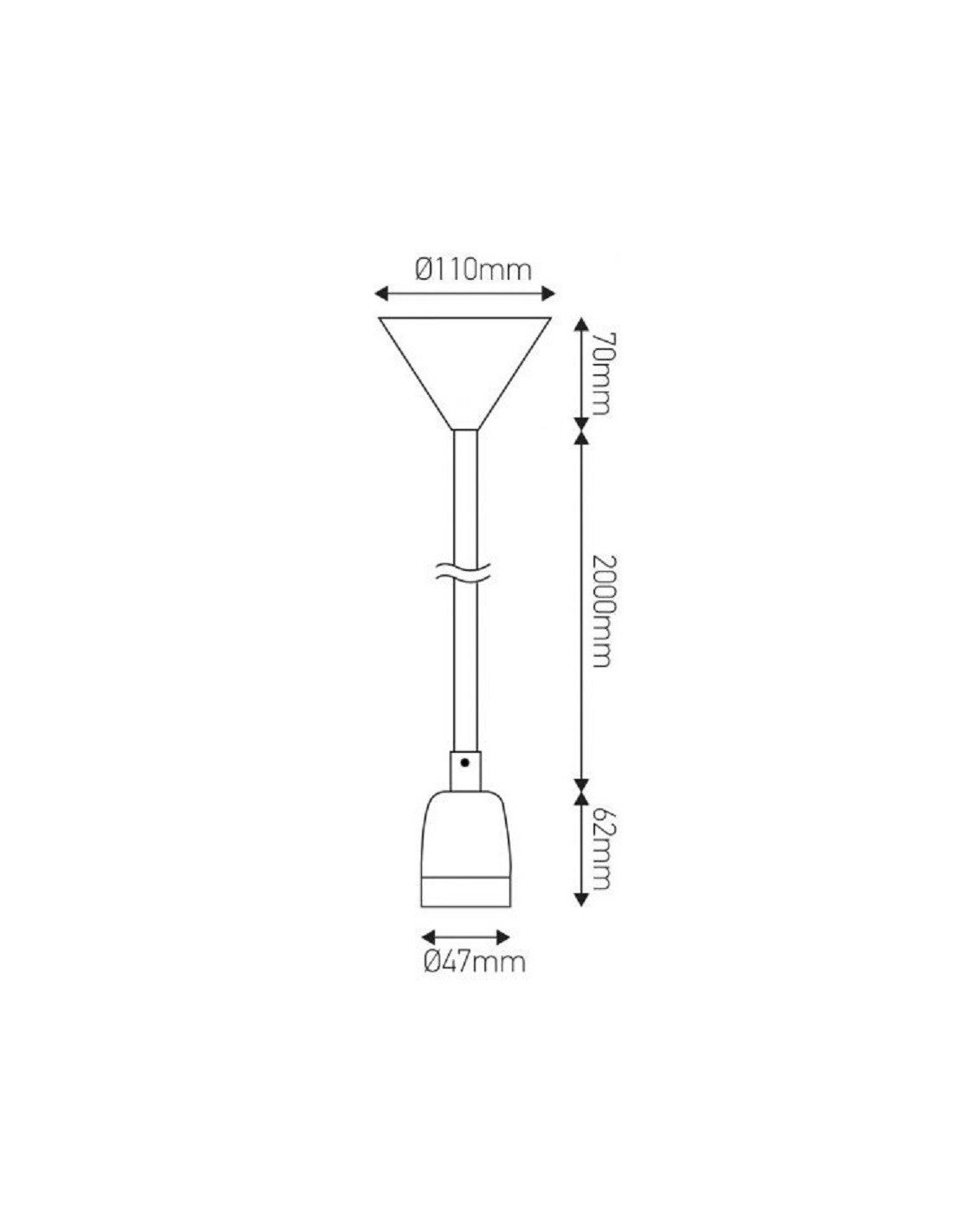 Dimension de la suspension : hauteur de 6,2 cm, diamètre de 4,5 cm et le câble textile de 2 mètres (réglable).