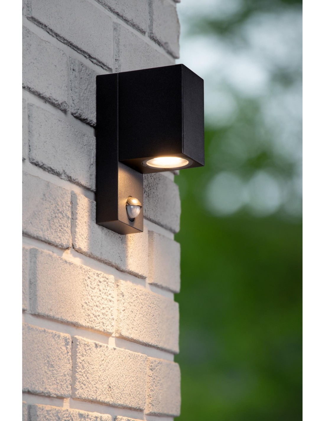 Applique murale rectangulaire détecteur IR 1xGU10 noire - Lucide - Zaro