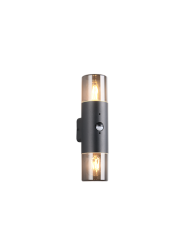 Applique murale extérieure noire 2xE27 avec détecteur- Trio - Hoosic