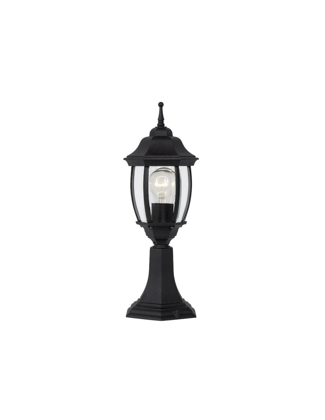 La borne extérieure Tireno est en aluminium avec un diffuseur en verre transparent de forme lanterne.