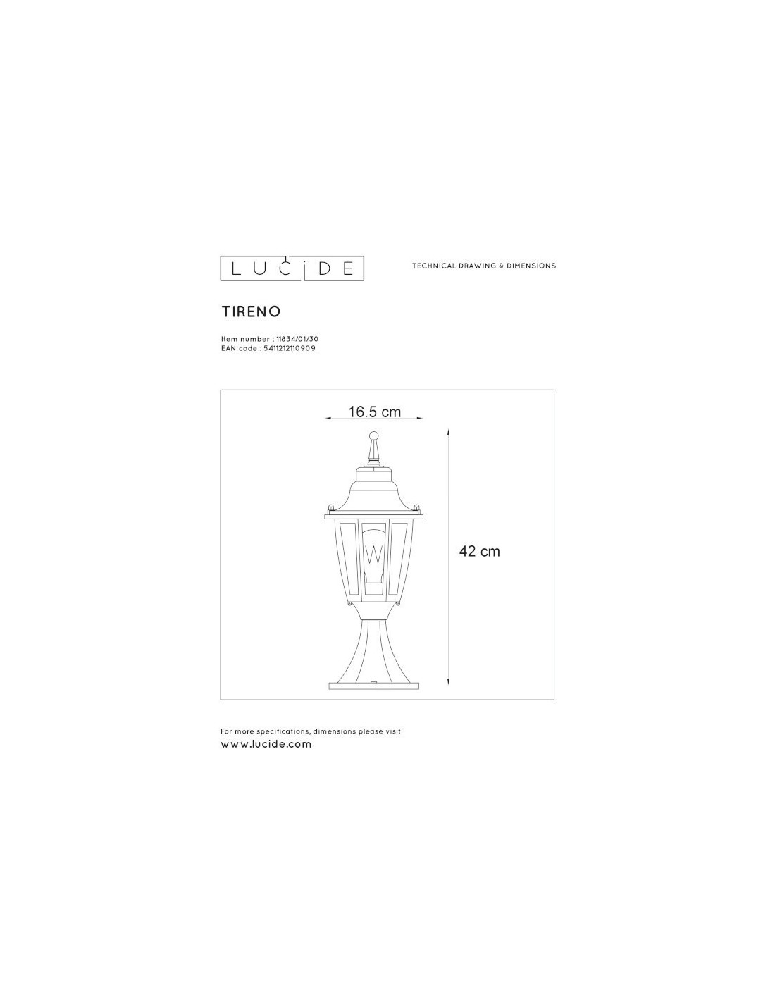La gamme Tireno propose : applique murale (ref 118330130), borne - tête de pilier (ref 118340130) et lampadaire (ref 118350330).