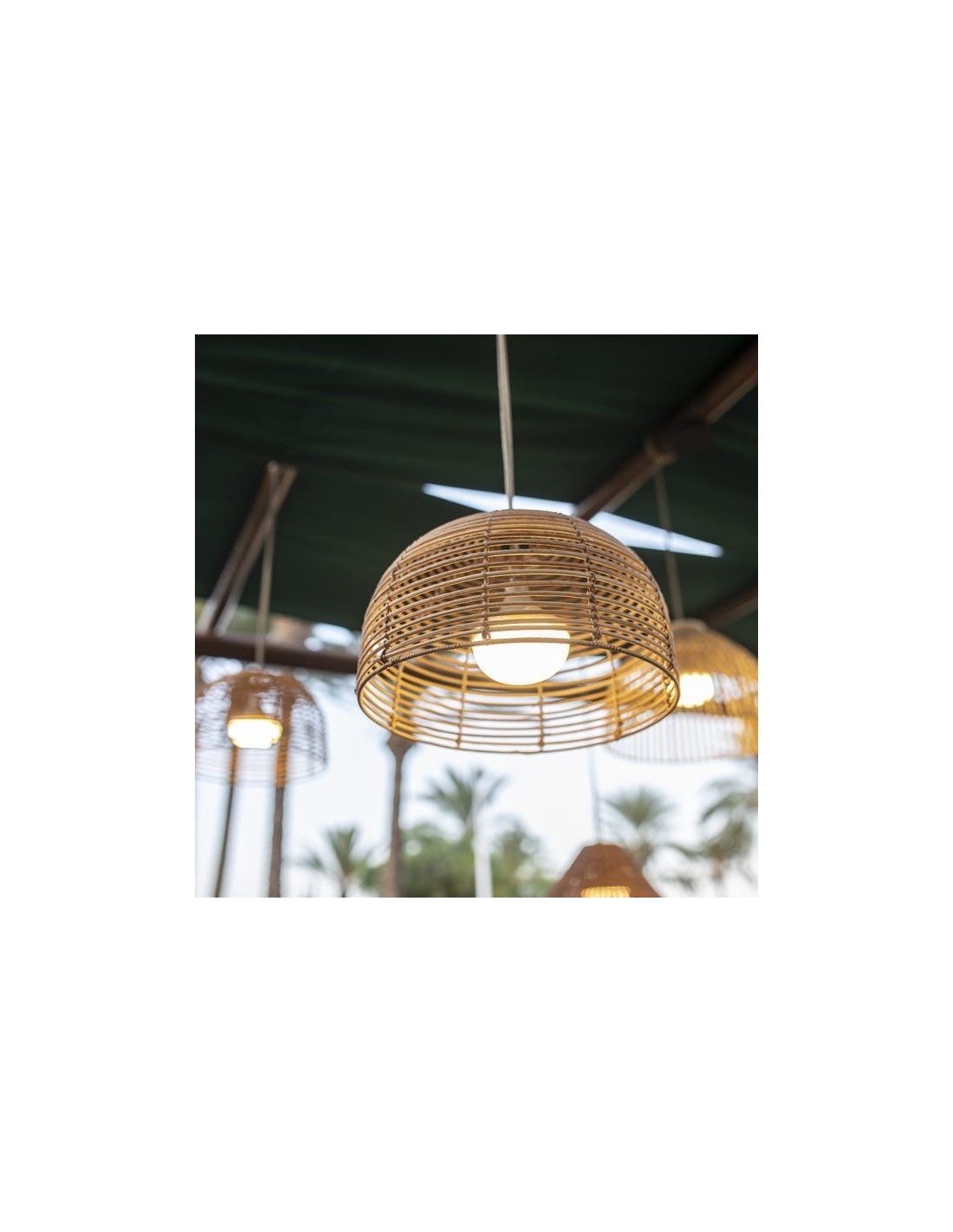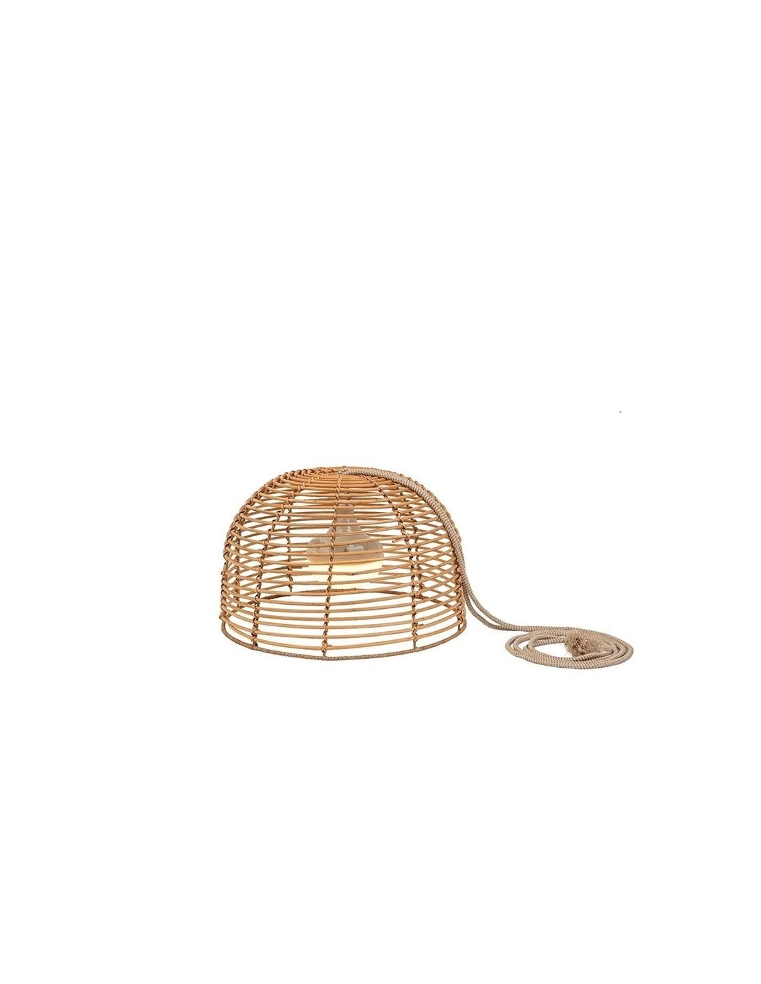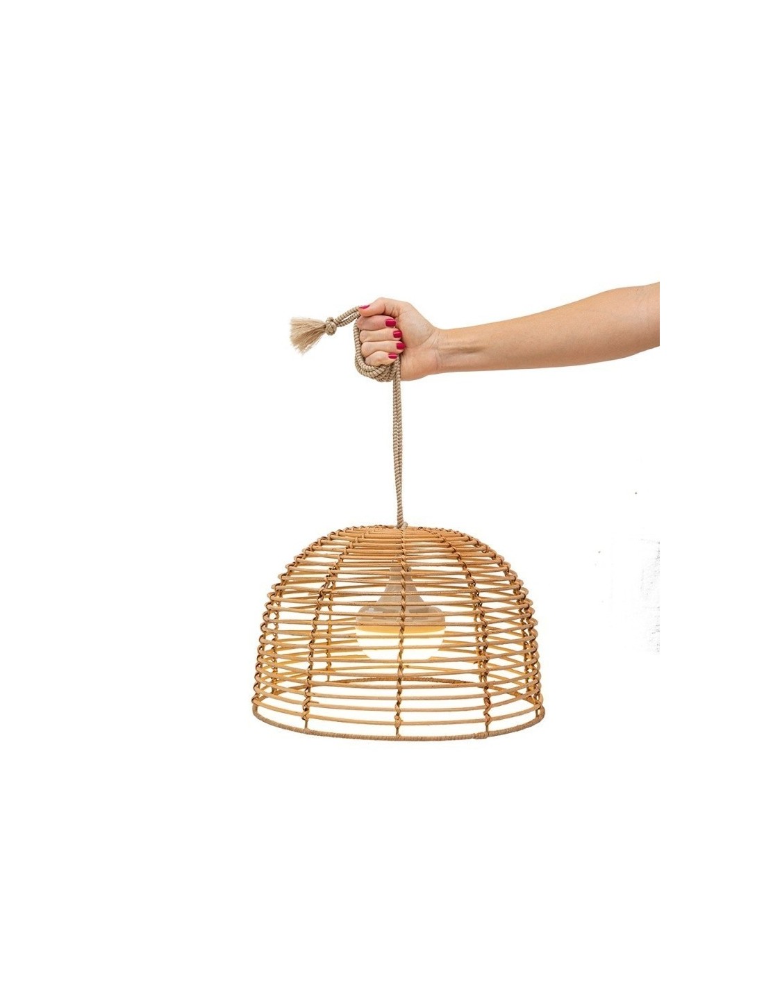 Pour ce tout nouveau concept, le designer a privilégié des matières naturelles : câble de suspension en corde, abat-jour en rotin et une esthétique simple et contemporaine.