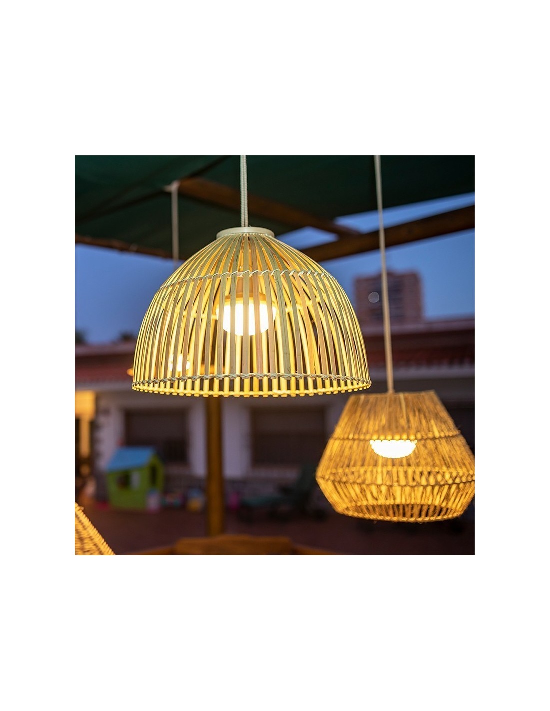 Optez pour Okinawa ou Aurora, guirlandes Led cordon jute, abat-jour bambou qui donneront un air de fête à votre terrasse ou votre pergola.