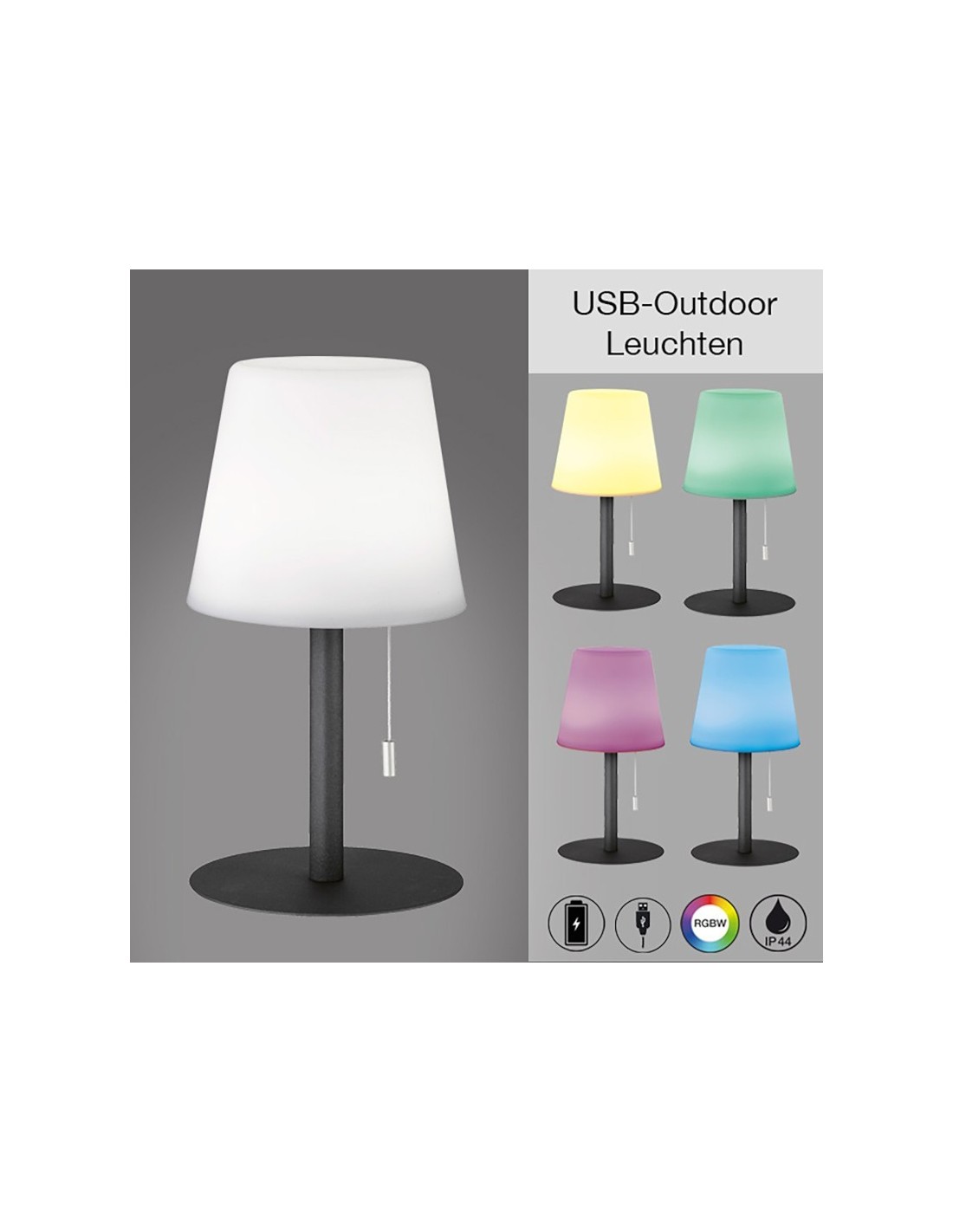 Lampe de table extérieure autonome rechargeable - Fischer & Honsel - Garden