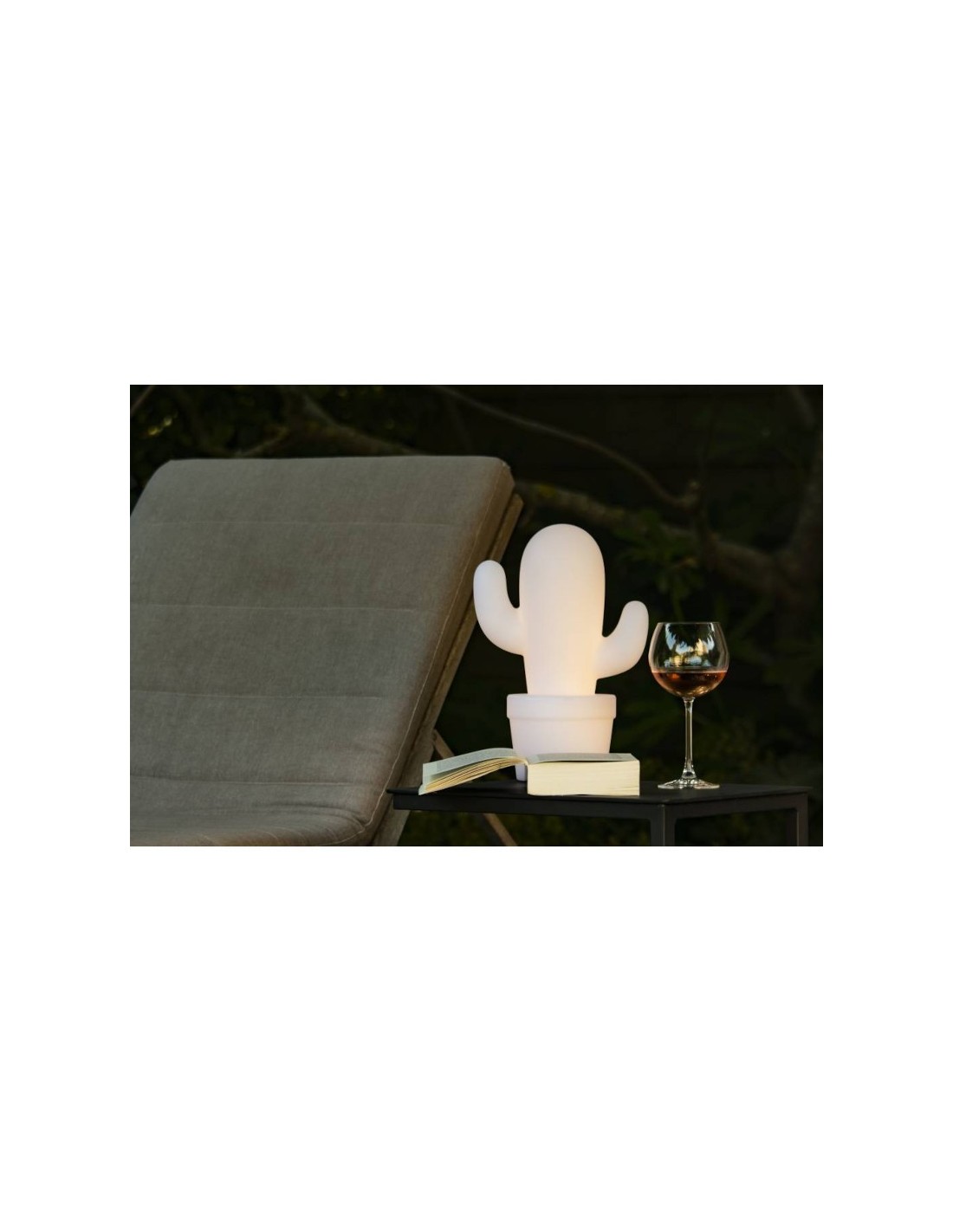Cette lampe de table extérieure Cactus fonctionne sur batterie rechargeable et est dimmable en 3 étapes.