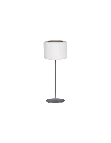 Avec son abat jour en plastique opalin,la lampe Pino est un produit indispensable pour toute terrasse ou jardin.
