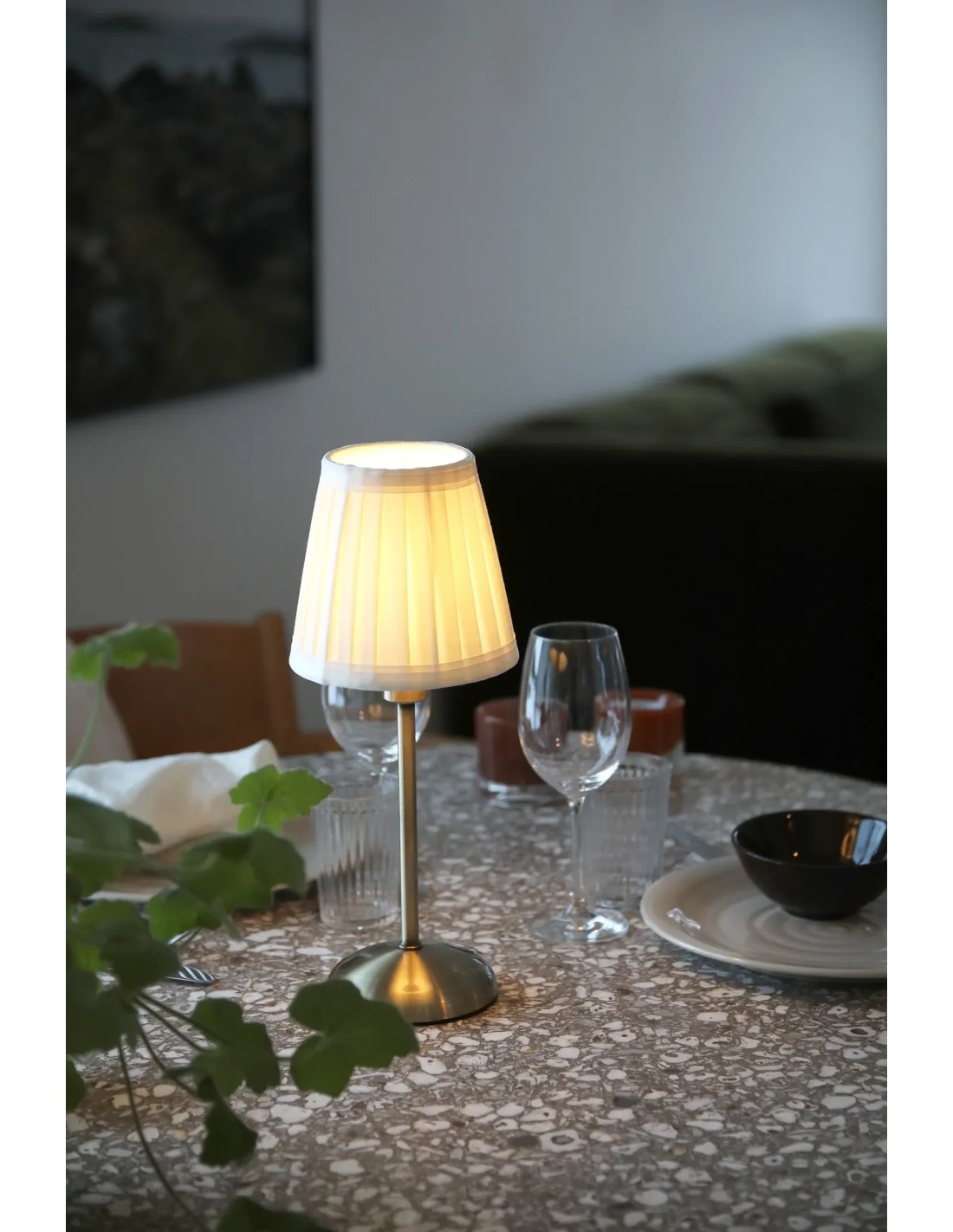 Lampe de table LED rechargeable laiton blanc cassé tissu plissé - Markslojd - Anno