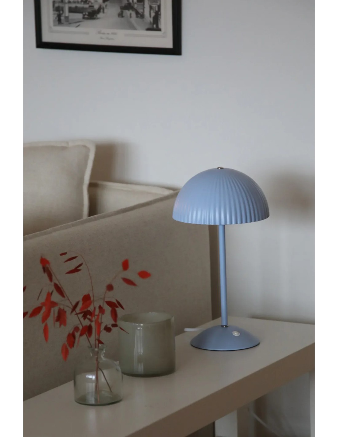 Sa structure fine permet de la placer facilement sur un buffet ou un meuble d’appoint.