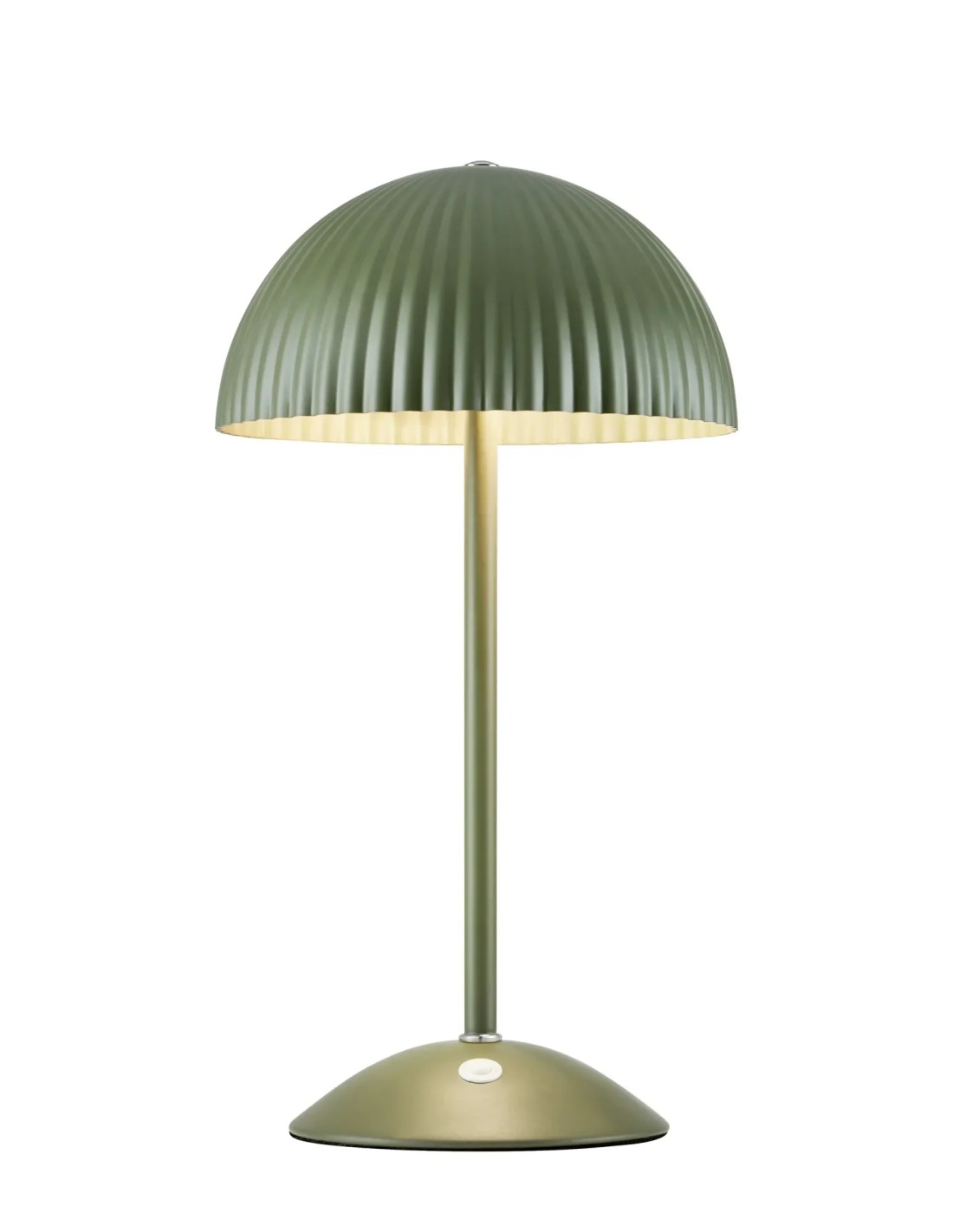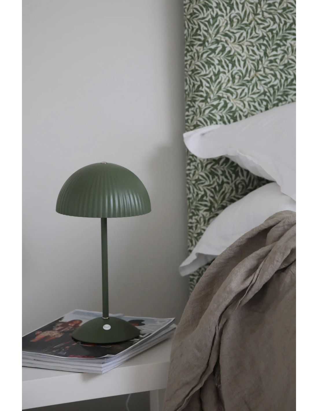 La lampe de table Zin de la marque Markslojd est réalisée en métal vert avec un abat-jour plissé décoratif qui apporte une touche naturelle et élégante.