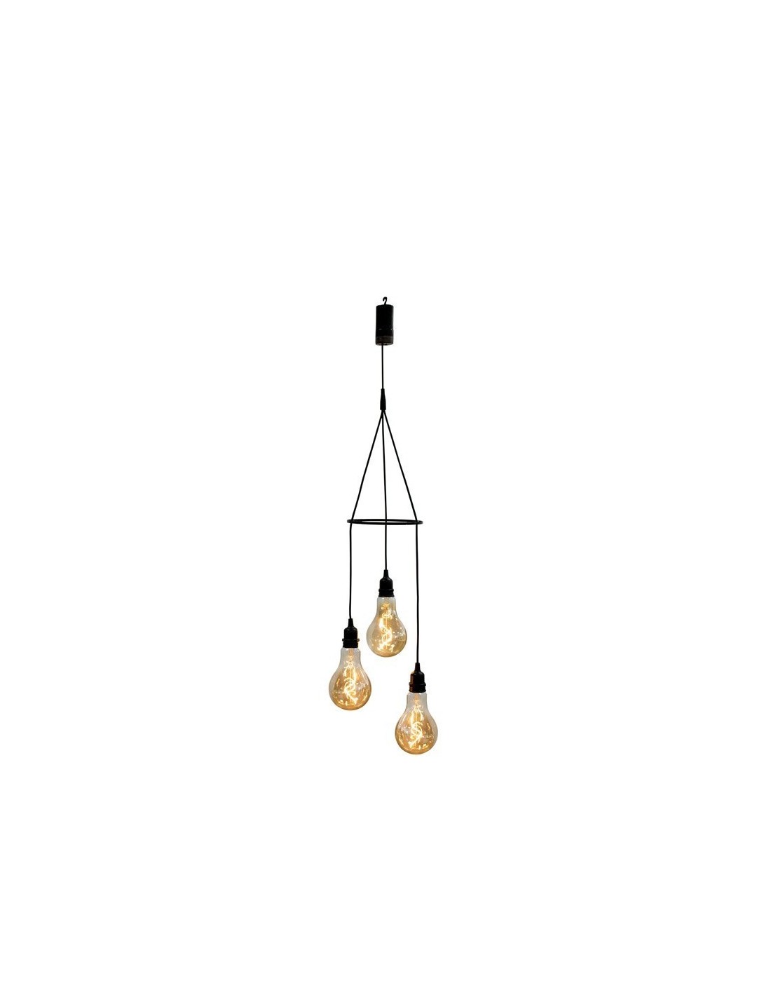 Les 3 ampoules à filament en verre ambré de style vintage rajoutent une touche d'originalité à ce luminaire.