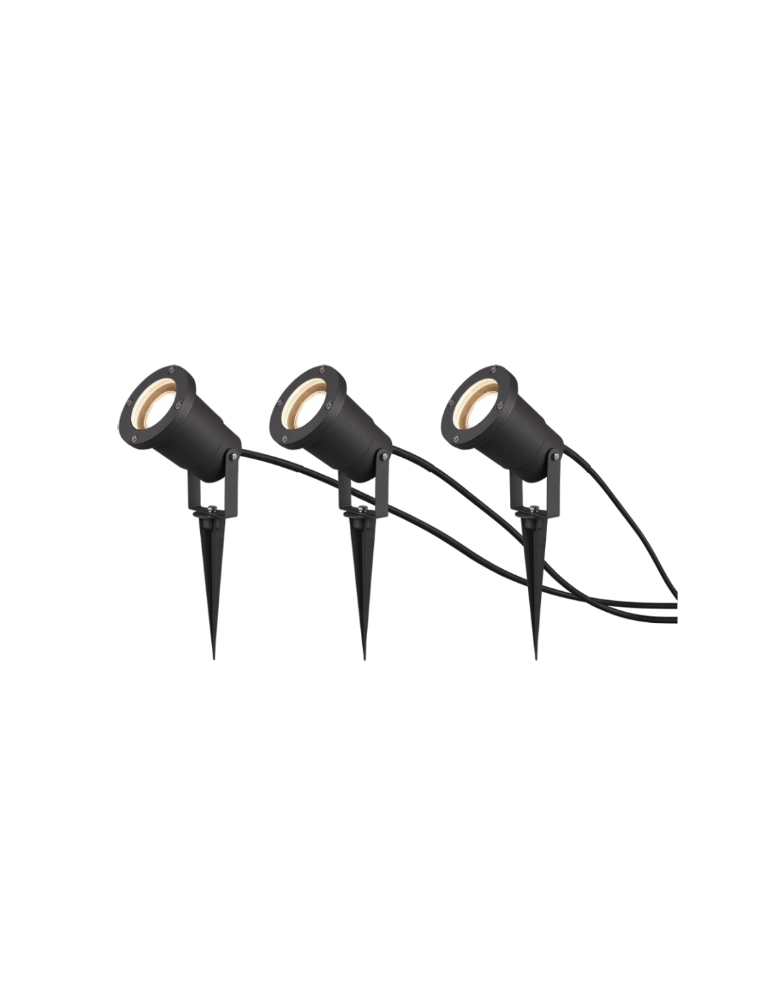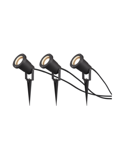 Chaque spot fonctionne avec une ampoule GU10 (non incluse) d’une puissance maximale de 28W. Ils sont équipés de piquets de terre pour une installation facile et flexible dans tout jardin ou espace extérieur.