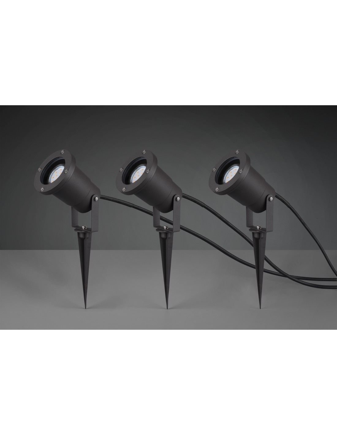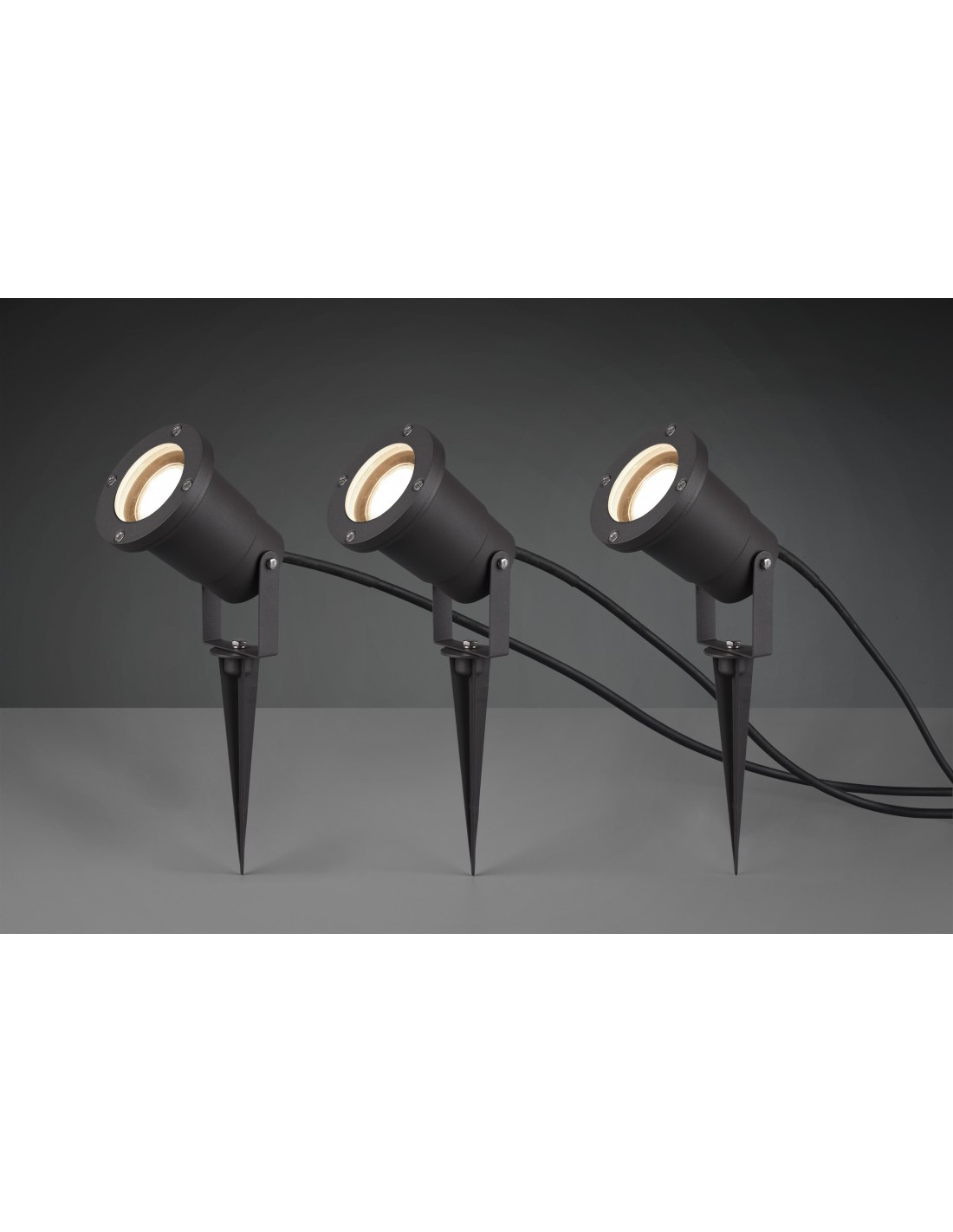 Le vrai + : lot de 3 spots orientables avec câbles prévus pour un usage en extérieur