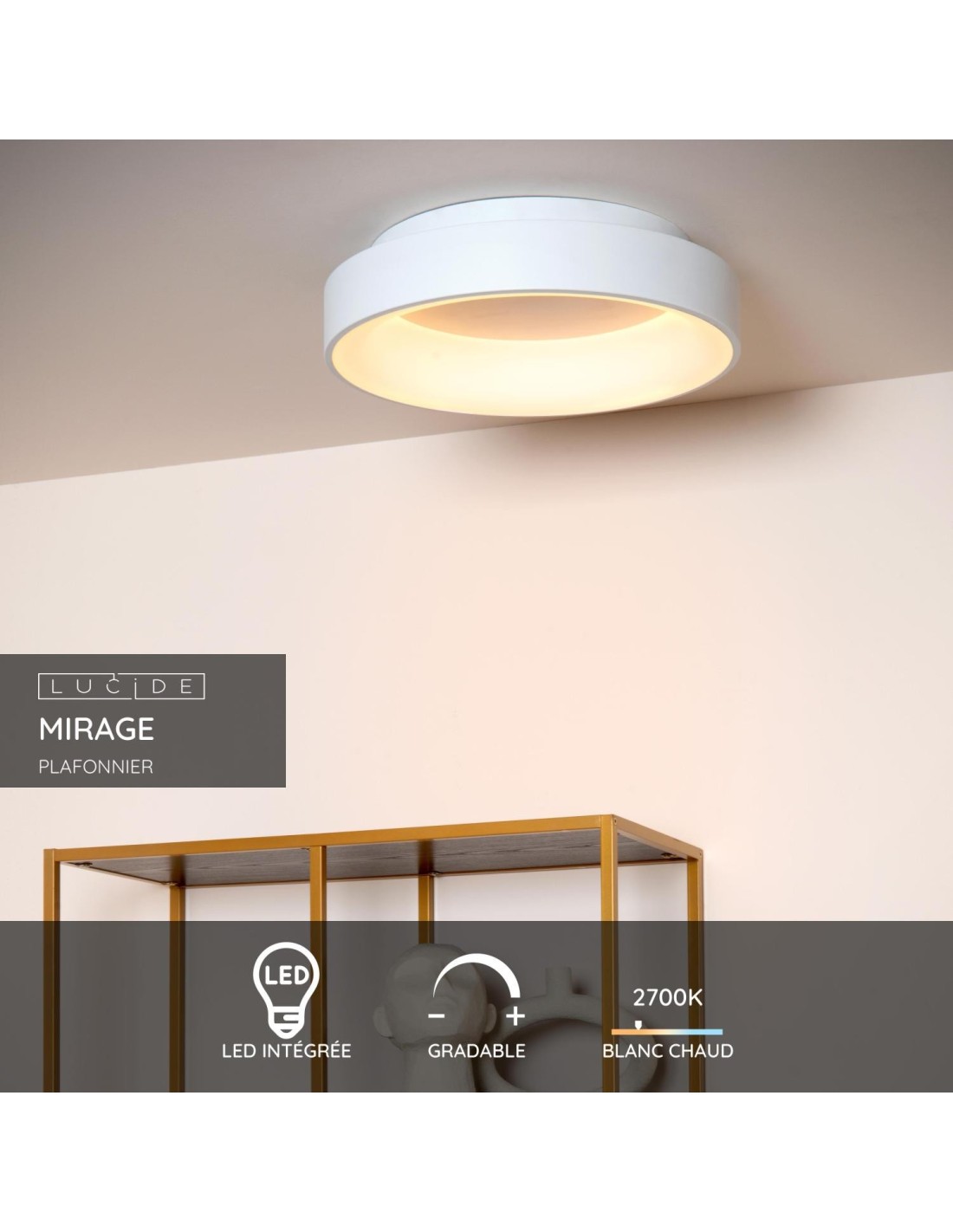 Il est dimmable et équipé de la technolgie CCT. Il est livré avec sa télécommande.