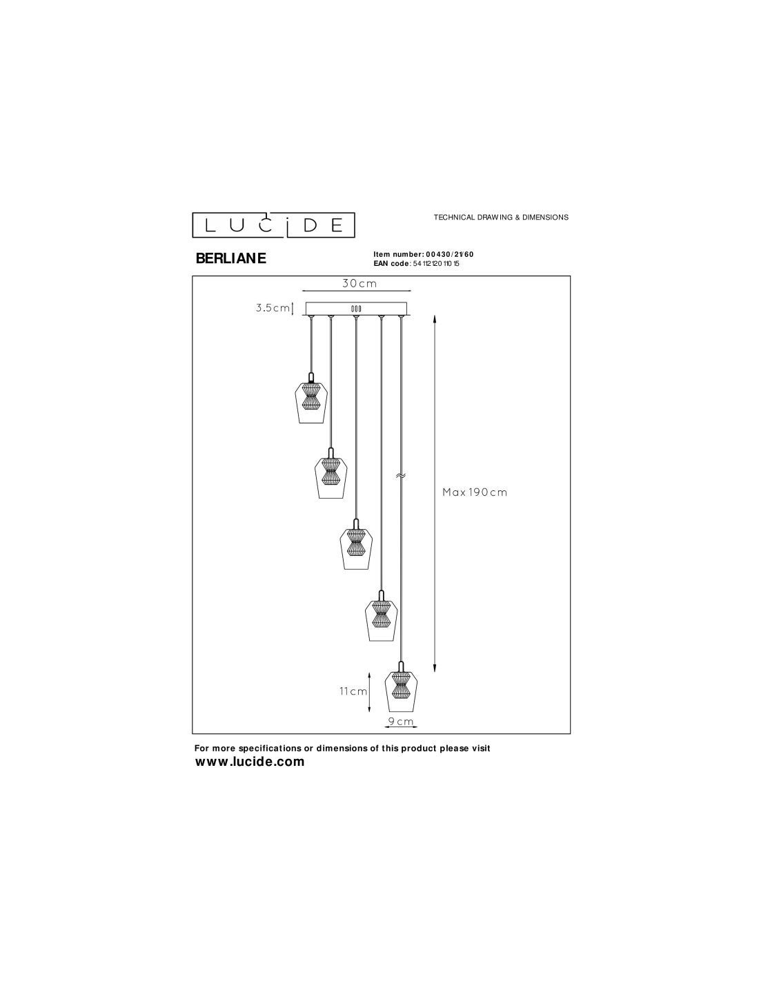 • Consommation énergétique: 5x4W / 230V / A intensité variable (Ampoules incluses)
