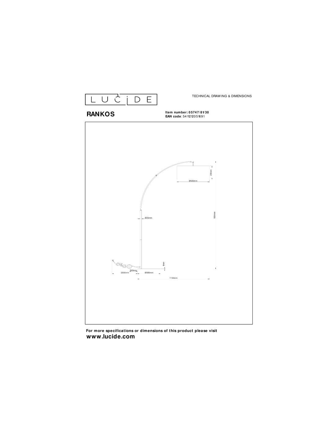 • 2 Ans garantie sur le luminaire / source de lumière appropriée est EAN: 5411212491046