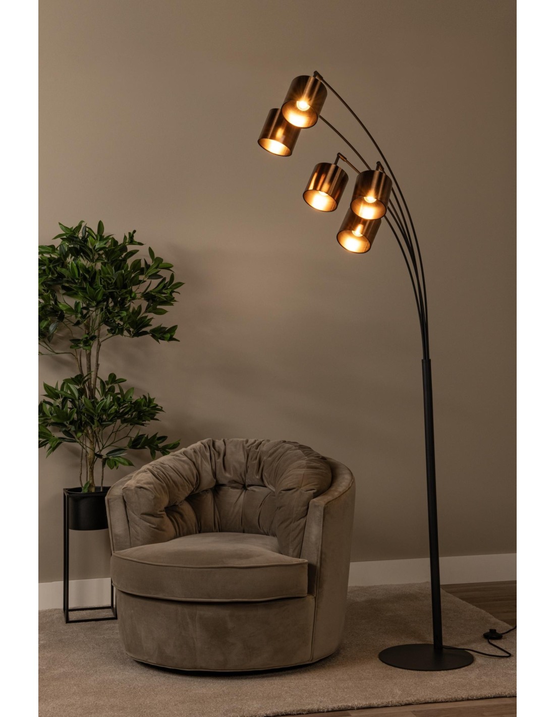 Pourquoi opter pour une lampe sur pied avec un seul point lumineux, alors que vous pouvez avoir plusieurs abat-jours ? Rankos porte bien son nom et combine plusieurs tiges élancées supportant des abat-jours en plastique à la finition cuivrée brossée. Ce lampadaire apporte de la lumière et une touche de fantaisie dans n'importe quel intérieur. Avec Rankos dans votre salon, cabinet ou salle à manger, vous optez pour de la personnalité, même lorsque la lampe est éteinte grâce à son interrupteur pratique. Êtes-vous prêt pour le caractère de Rankos ?