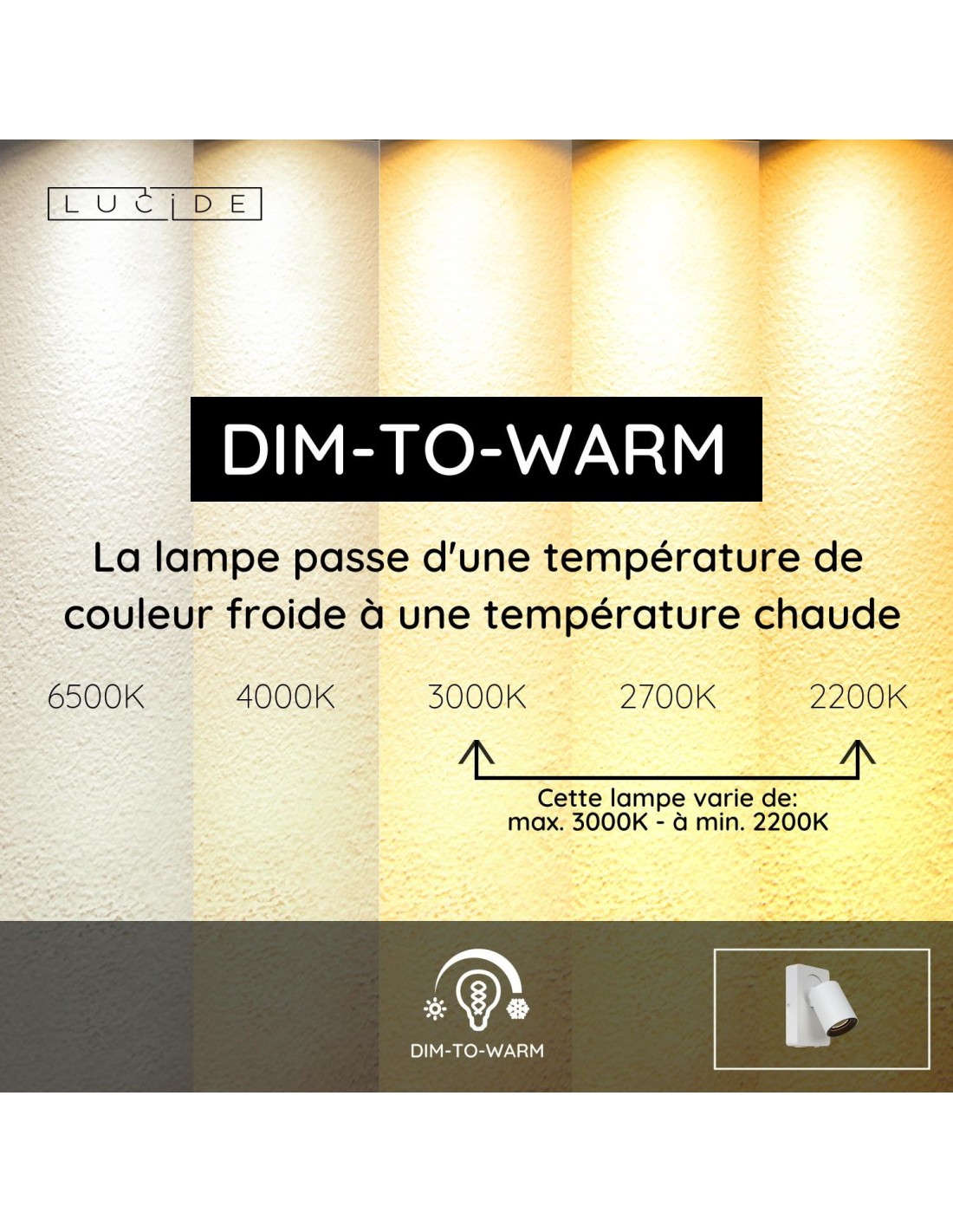 • Dim to warm, dimmable vers une couleur plus chaude (2200K)