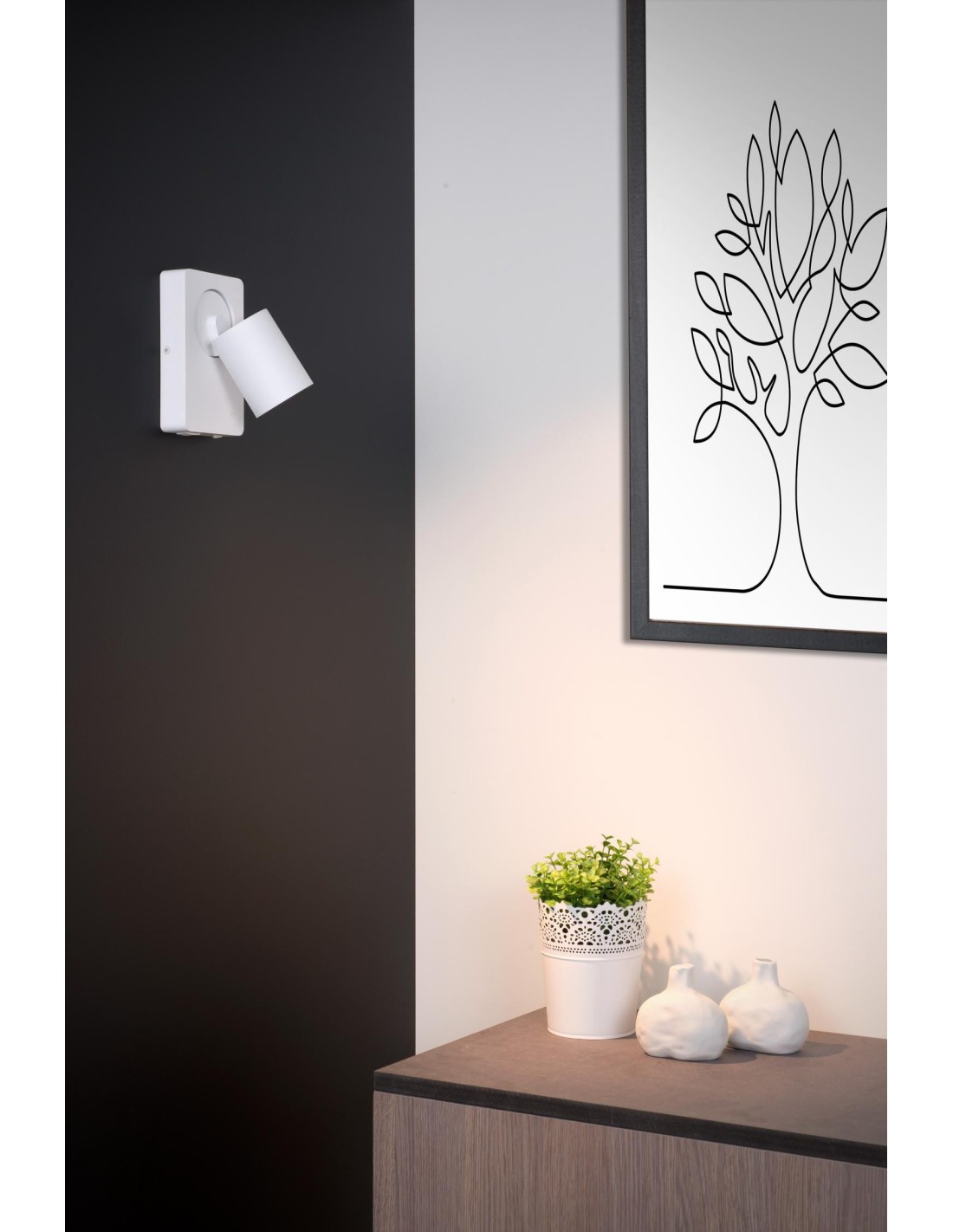 Le spot mural Nigel associe design épuré et grande maniabilité. La plaque de montage rectangulaire, aux coins arrondis, permet de relier le cylindre contenant le point lumineux. Celui-ci est rotatif et inclinable, pour une incidence lumineuse optimale adaptée à vos besoins. Il suffit d'allumer et d'éteindre la lumière blanche chaude à l'aide de l'interrupteur situé sur la lampe elle-même. Le luminaire est fabriqué en aluminium de haute qualité donnant à Nigel son caractère durable et son aspect moderne. Le meilleur des deux mondes.