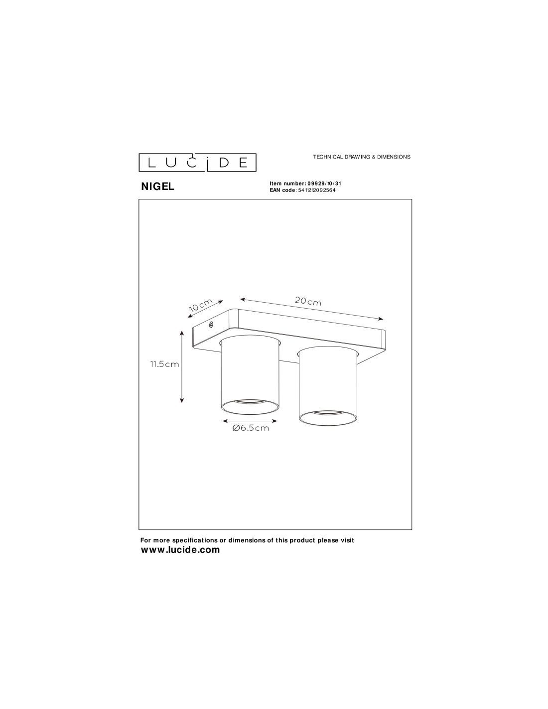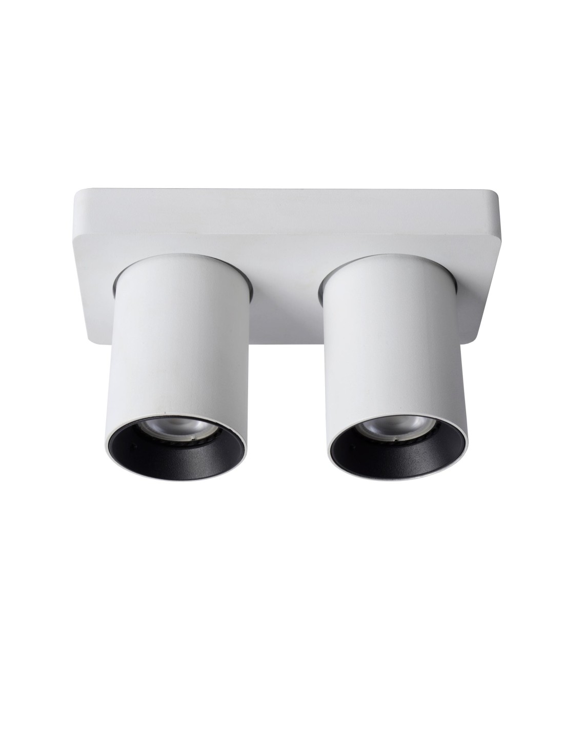 Voici Nigel, un spot plafond compatible avec deux sources lumineuses LED GU10 dim to warm. Ceux-ci émettent une lumière de 2200 à 3000k. Une conception simple et intemporelle munie d'un abat-jour cylindrique pour que le spot se sente à sa place dans toute une variété de styles d'intérieur. Nigel est disponible en noir et en blanc. Et avec plusieurs points lumineux. La version blanche a reçu un accent noir, à l'intérieur du luminaire. Le spot plafond en aluminium mesure 12 centimètres. Fixez Nigel au plafond, équipez-le d'un variateur compatible, dirigez et inclinez le spot comme vous le voulez et profitez de sa lumière.