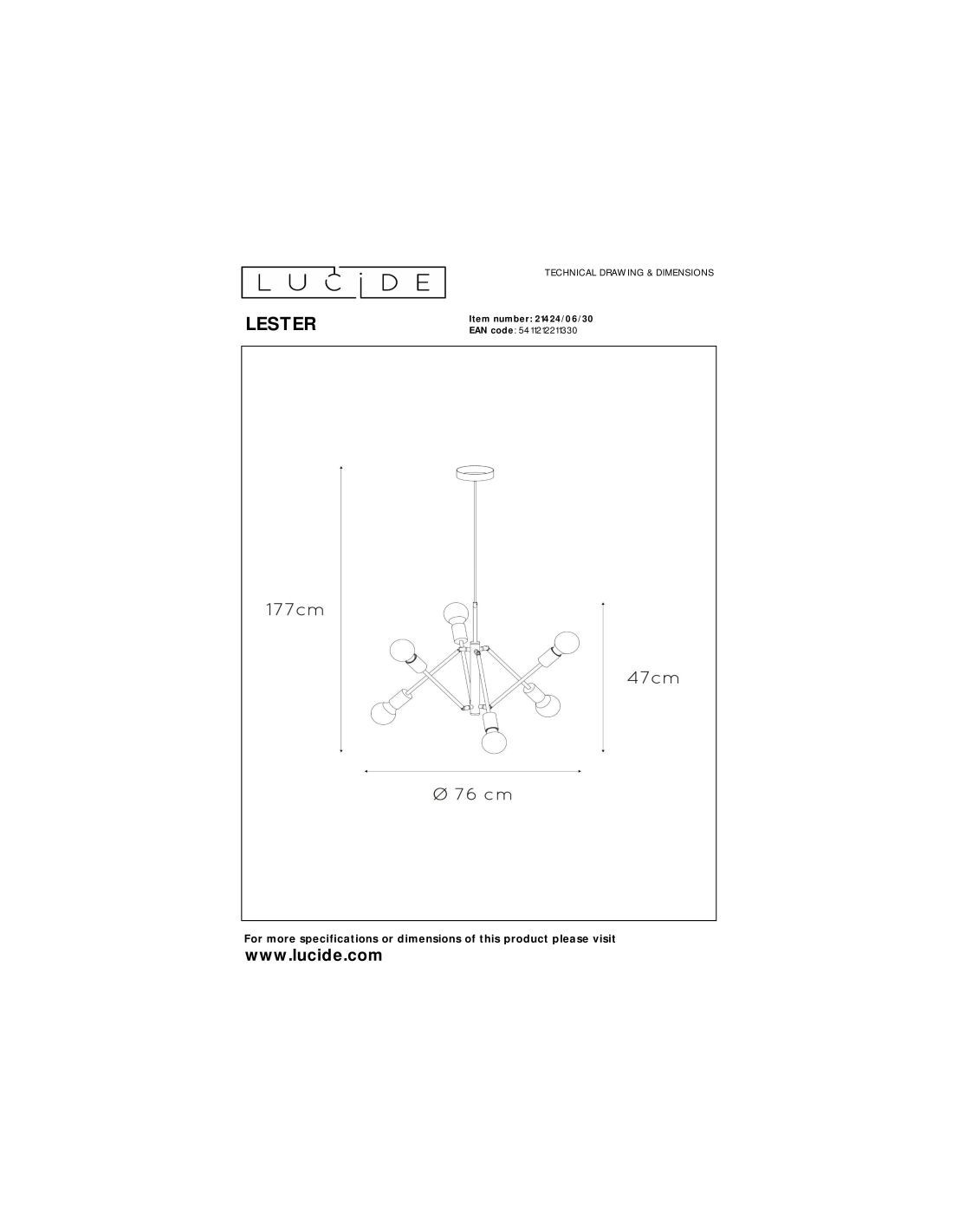 • Consommation énergétique: 6x40W / 230V / A intensité variable (Ampoules non incluses)