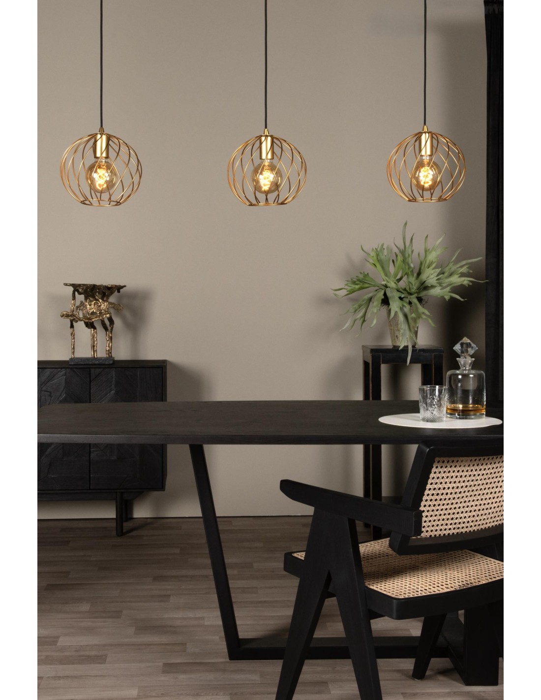 Mettez votre table à manger ou votre îlot de cuisine en valeur avec Danza, une élégante lampe suspendue. Le lustre produit la lumière ambiante idéale à table grâce à 3 sources lumineuses. Chaque abat-jour sphérique est composé de fils métalliques fins et torsadés à structure ouverte. Les ampoules à filament de Danza sont ainsi parfaitement mises en valeur. Vous avez besoin de beaucoup de lumière le matin ou vous recherchez un peu plus d'intimité lors d'un dîner entre amis ? Grâce à un variateur externe, vous contrôlez l'intensité lumineuse à votre guise. Danza mesure 130 centimètres de long et est réglable en hauteur jusqu'à un maximum de 150 centimètres.