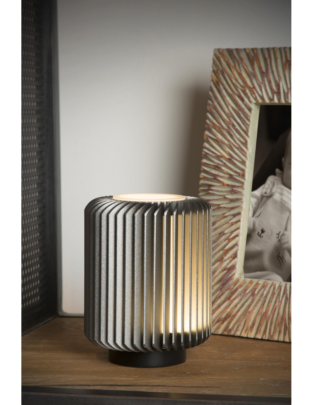 Avec la grâce d'une princesse virevoltant dans sa plus belle robe de soirée, les lattes d'aluminium ondulent autour de l'éclairage LED intégré de la Turbin. La jolie lampe de table est un cylindre moderne d'à peine 10 centimètres de large, de long et de haut. La lampe à LED intégrée distribue la lumière tout autour d'elle à travers les fentes du boîtier en aluminium. Dans la continuité de son format compact, la lampe de table est facile à installer : branchez simplement la fiche dans la prise et allumez ou éteignez la Turbin à l'aide du bouton sur la lampe.