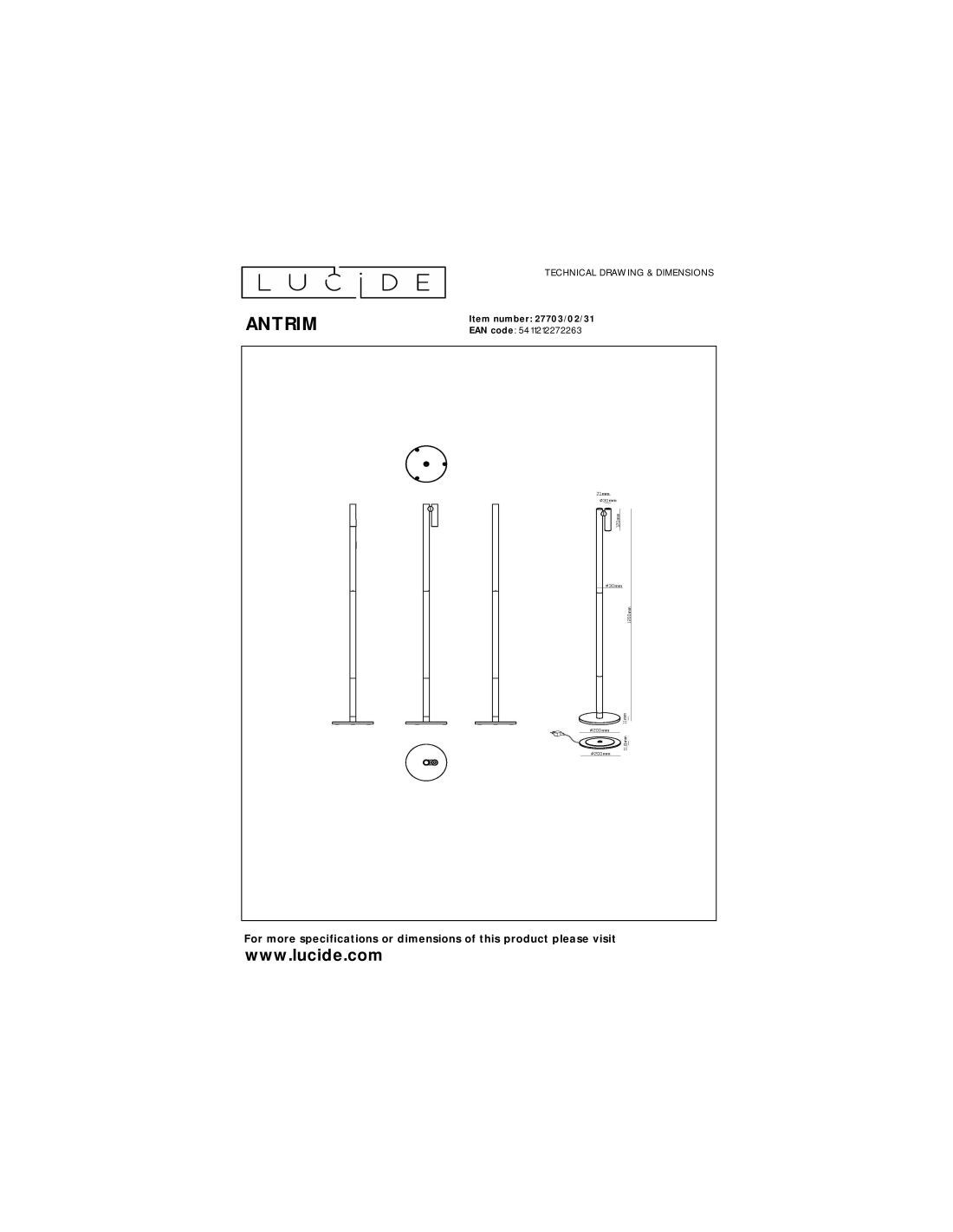 • Dimensions: Lon.20 x Larg.20 x Haut.120 cm