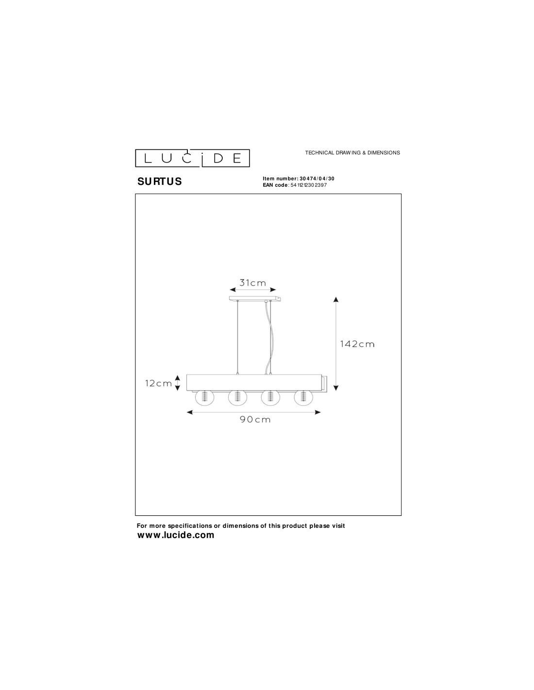 • Consommation énergétique: 4x60W / 230V / A intensité variable (Ampoules non incluses)