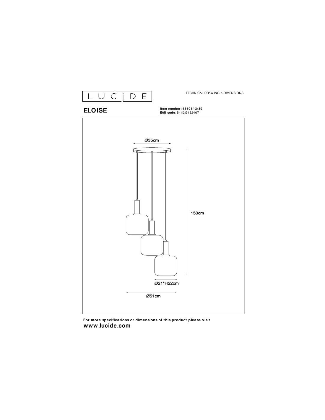 • Consommation énergétique: 3x40W / 230V / A intensité variable (Ampoules non incluses)