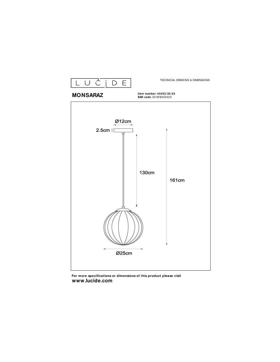 • 2 Ans garantie sur le luminaire / source de lumière appropriée est EAN: 5411212491060