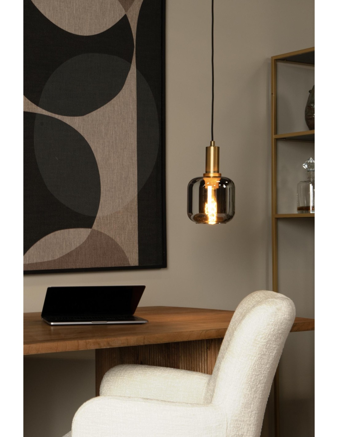 Le verre et le laiton de haute qualité sont la formule idéale pour un design élégant. La suspension Joanet l'a bien compris. Les formes élégantes et la finition fumée du verre donnent à ce luminaire un côté mystérieux. Au coeur du tube de verre, l'ampoule diffuse une lueur agréable et diffuse. Il suffit d'ajuster la hauteur de Joanet avant de fixer la plaque de montage au plafond. Lorsqu'elle est connectée à un gradateur, cette lampe apportera encore plus d'ambiance dans votre intérieur moderne. Pour n'importe quelle occasion.