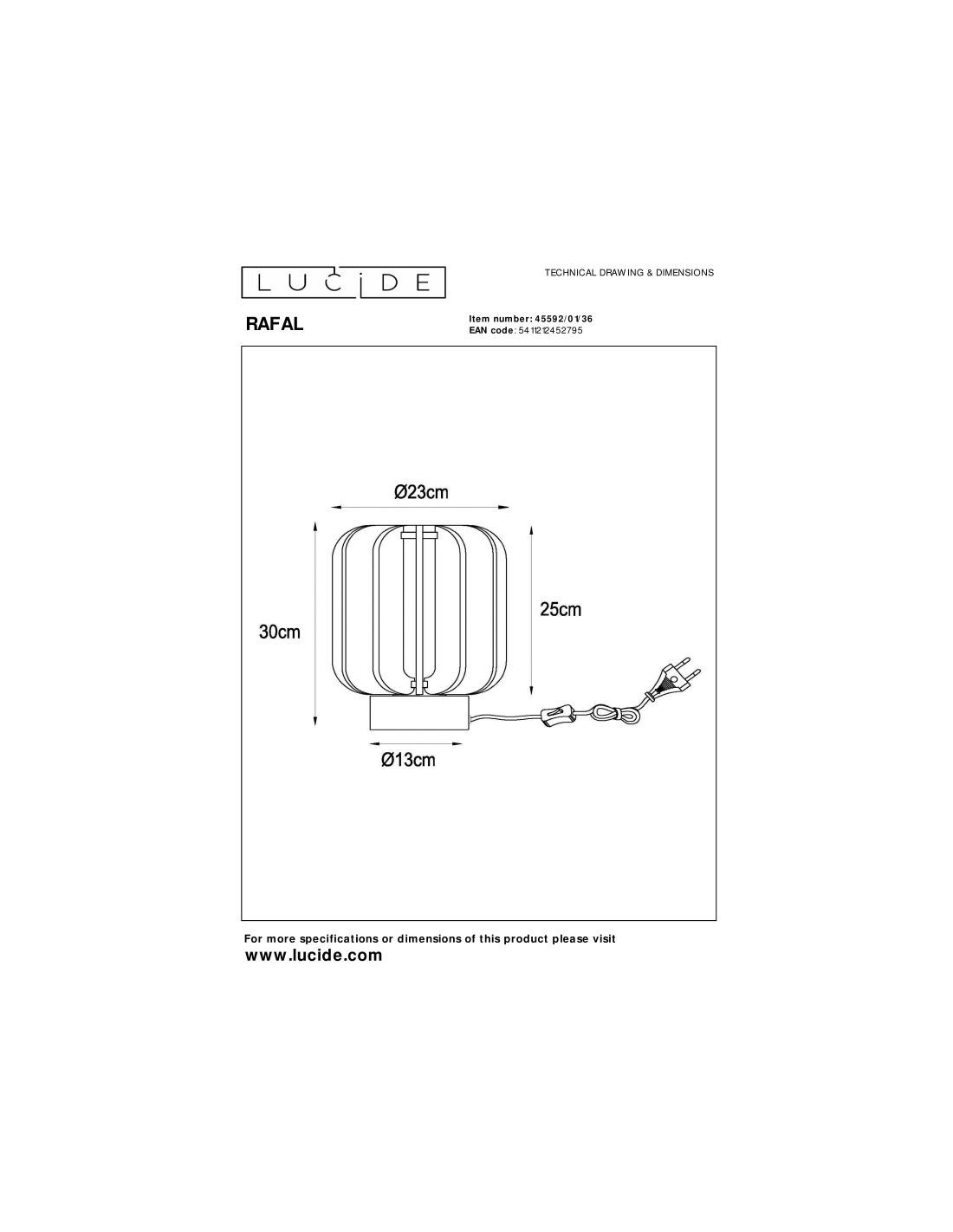 • 2 Ans garantie sur le luminaire / source de lumière appropriée est EAN: 5411212491077