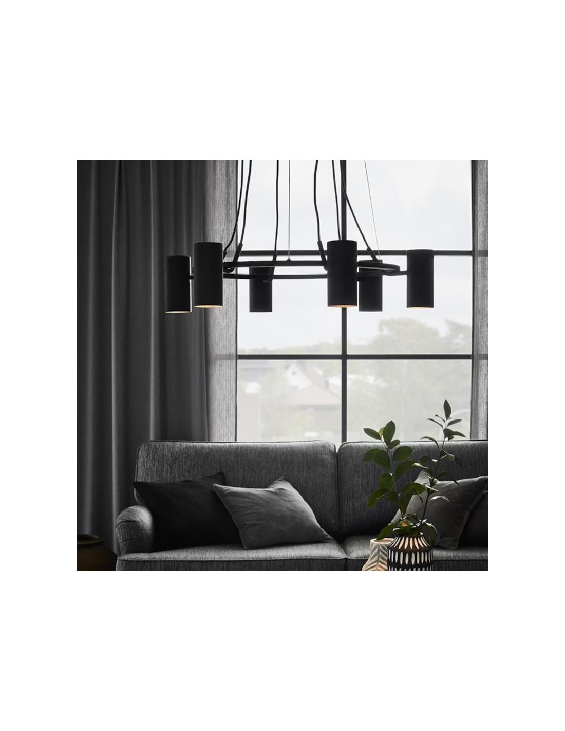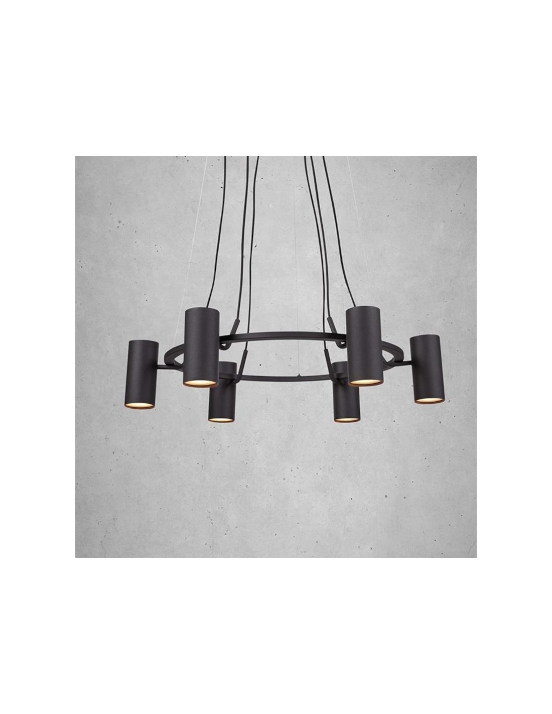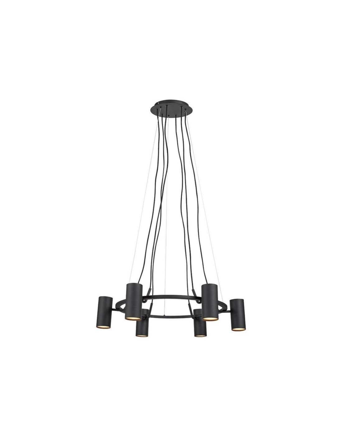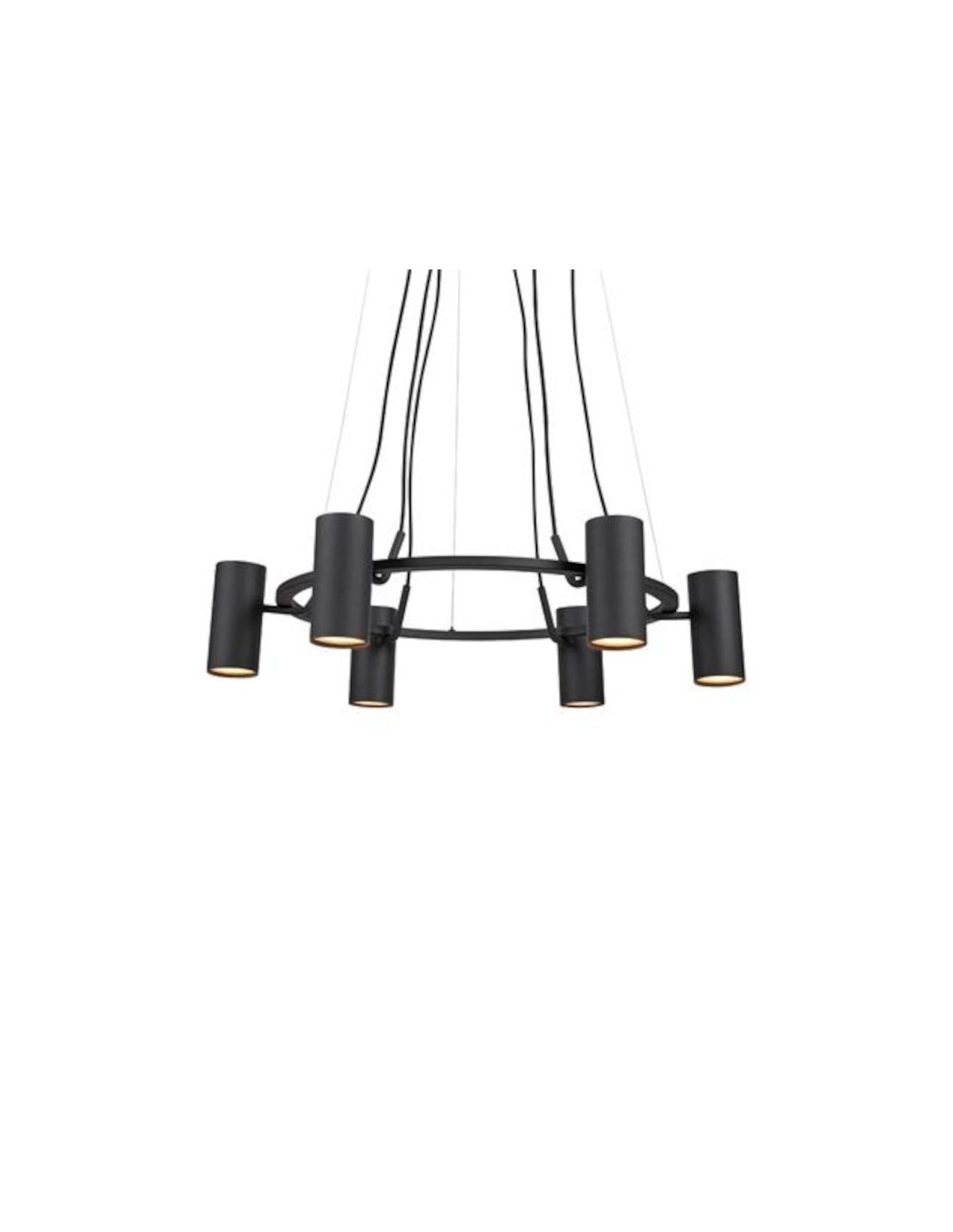 Cette suspension lumineuse en métal noir fonctionne avec 6 ampoules GU10, non fournies, ce qui vous offre l'opportunité de choisir température de couleur et intensité lumineuse en fonction de vos goûts et besoins.