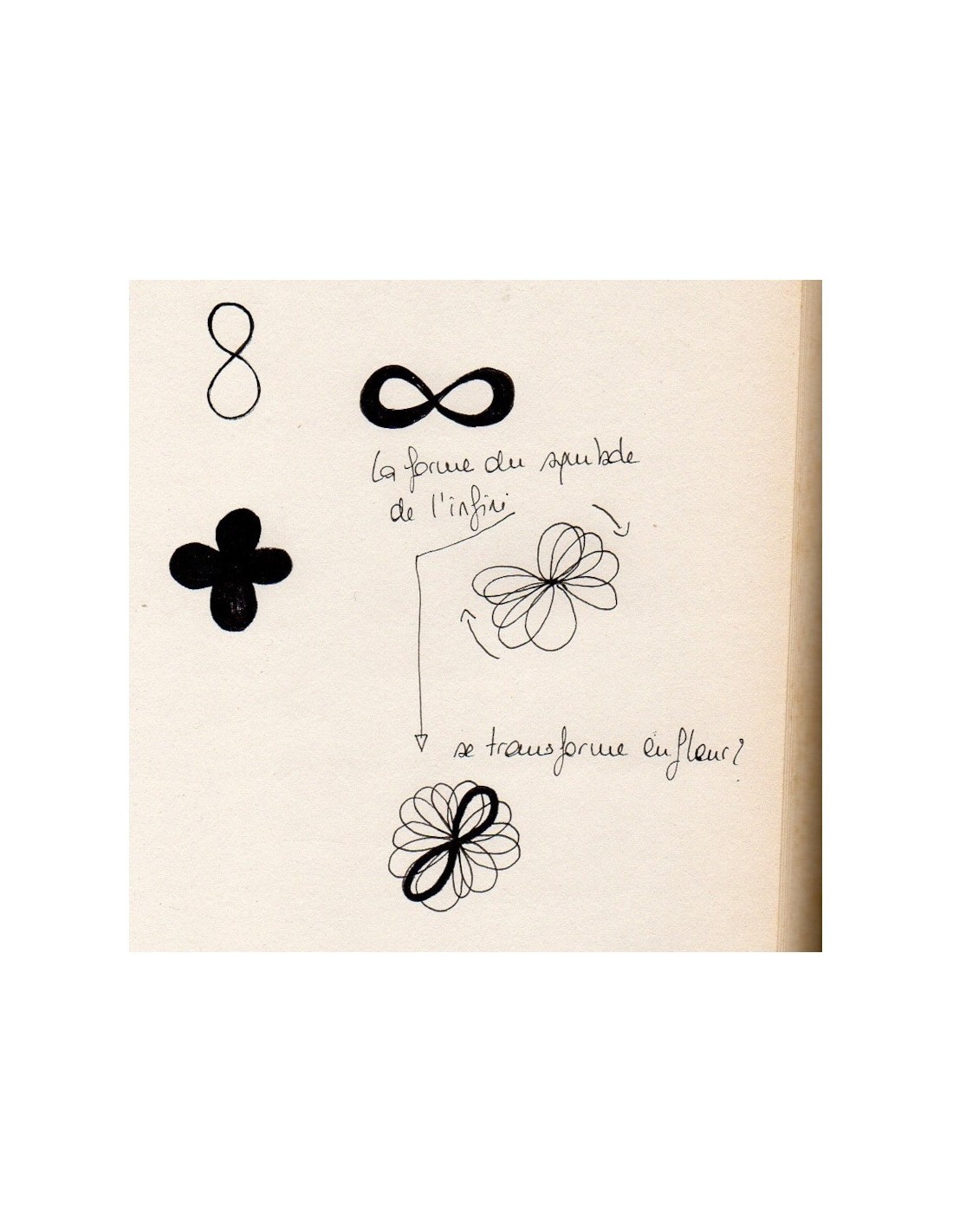 Pour transporter les feuilles de placage bois, elle les roule et constate combien la matière accepte cette courbure, la plus évidente étant une forme de 8, symbole de l'infini. En en superposant plusieurs, elle finit par obtenir une fleur.