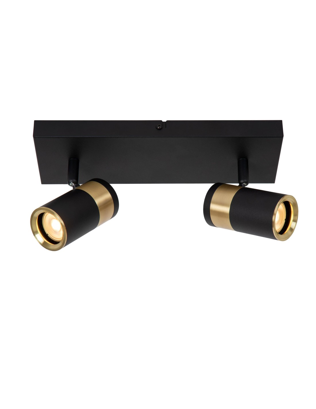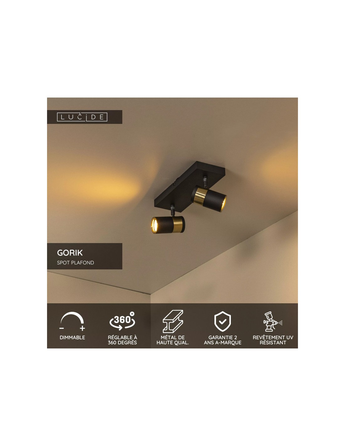 Plafonnier orientable 2xGU10 noir Mat / Laiton - Lucide - Gorik