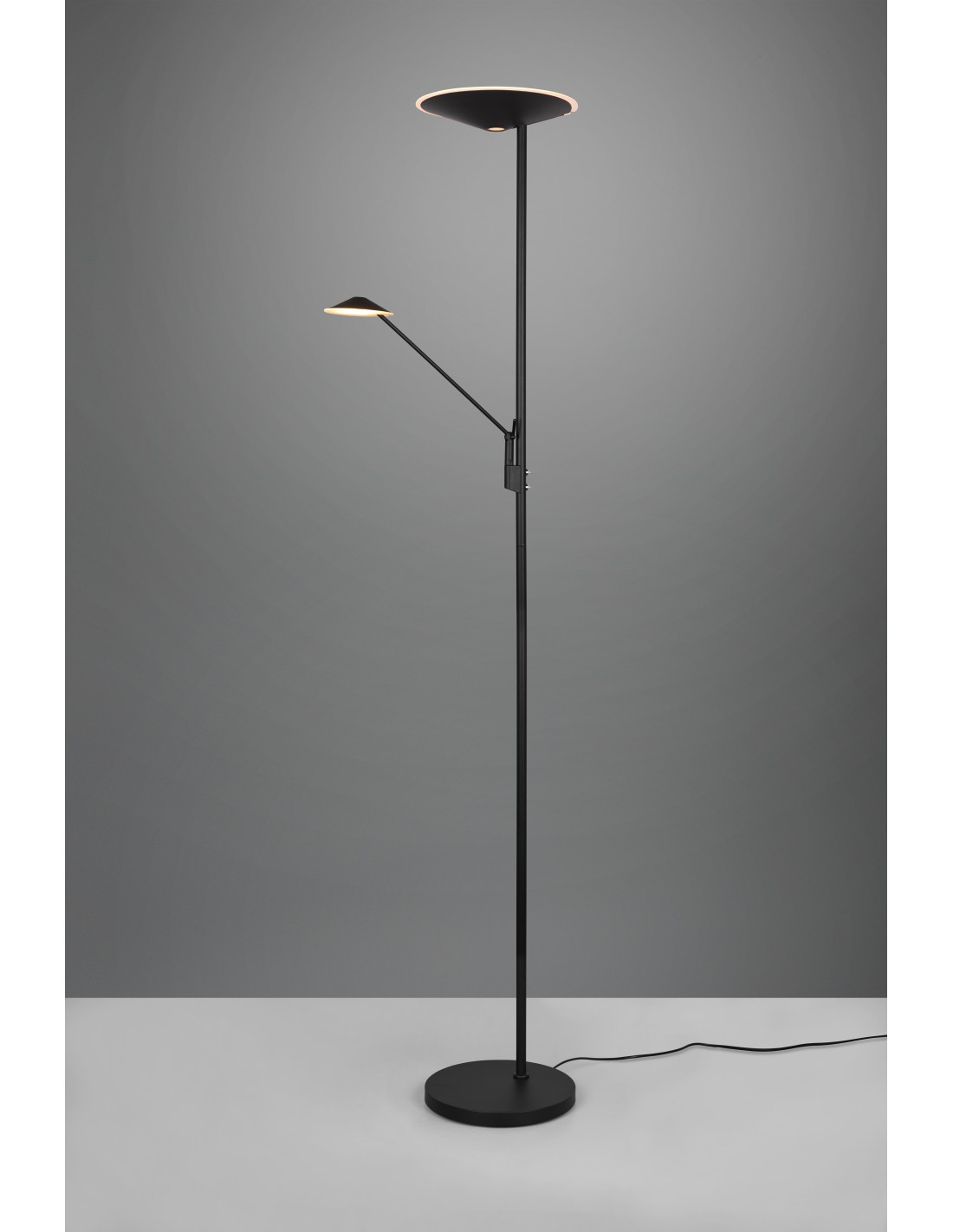 Le lampadaire Brantford de Trio combine un design moderne en métal noir mat avec une technologie LED avancée et pratique. Il est équipé d’une LED SMD intégrée de 30W, délivrant une luminosité de 3500 lumens et offrant un réglage de la température de couleur (2700K, 3200K et 4000K) pour une ambiance personnalisée.