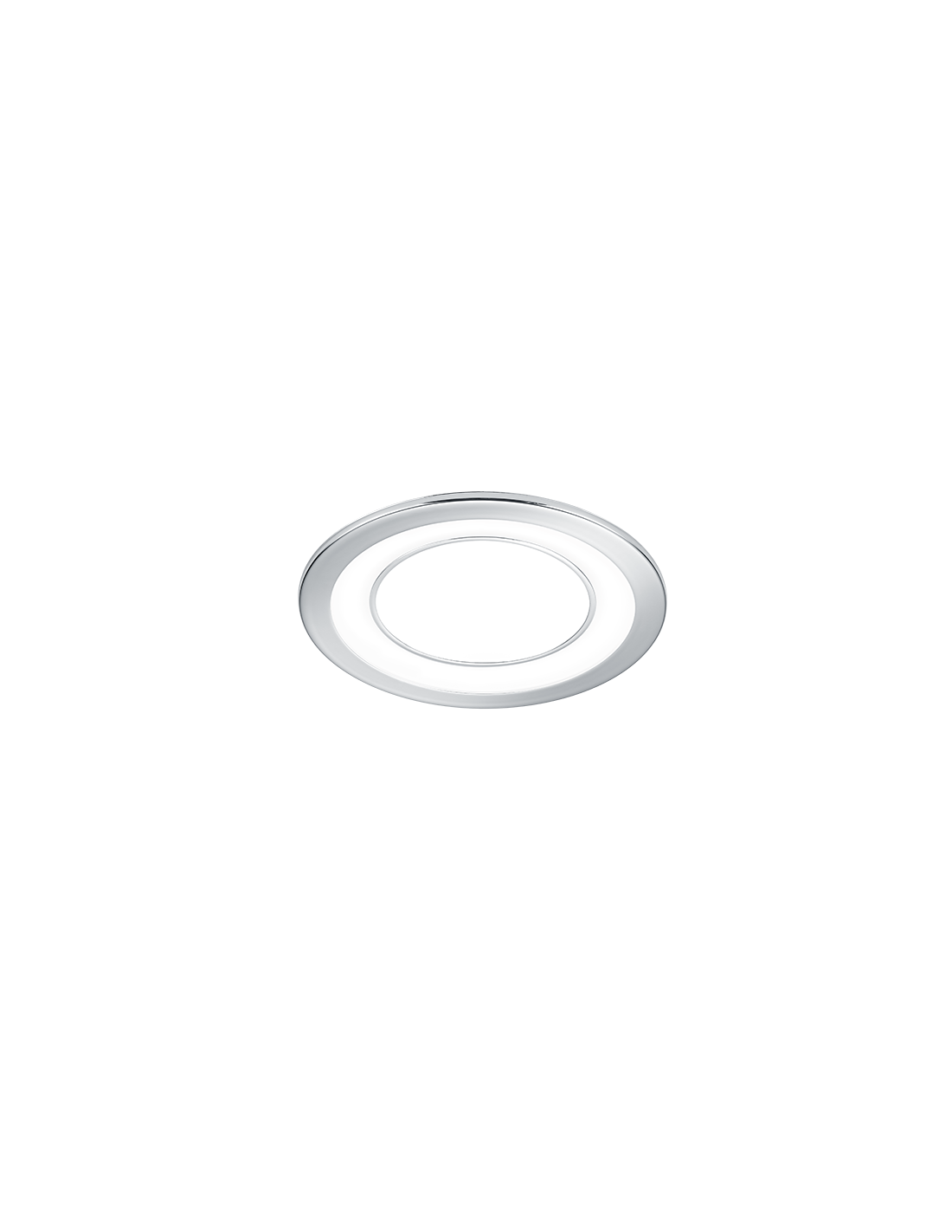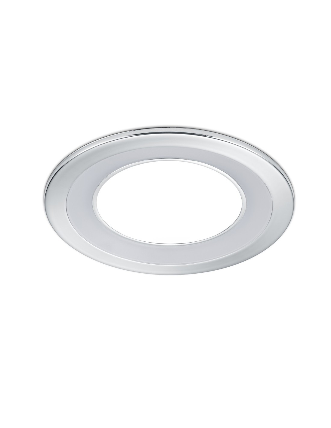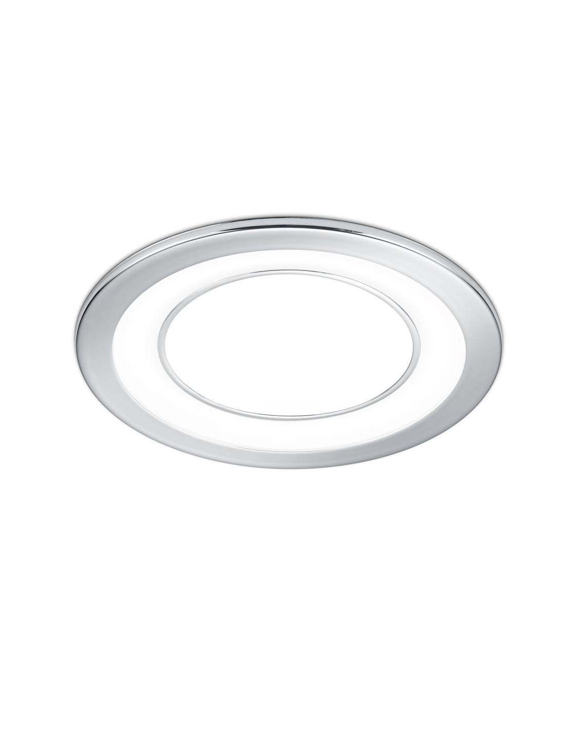 Conçu en plastique finition chrome, il s’intègre aisément dans les plafonds grâce à un diamètre de 14,8 cm, une découpe de 13 cm et une profondeur d’encastrement de seulement 5 cm.