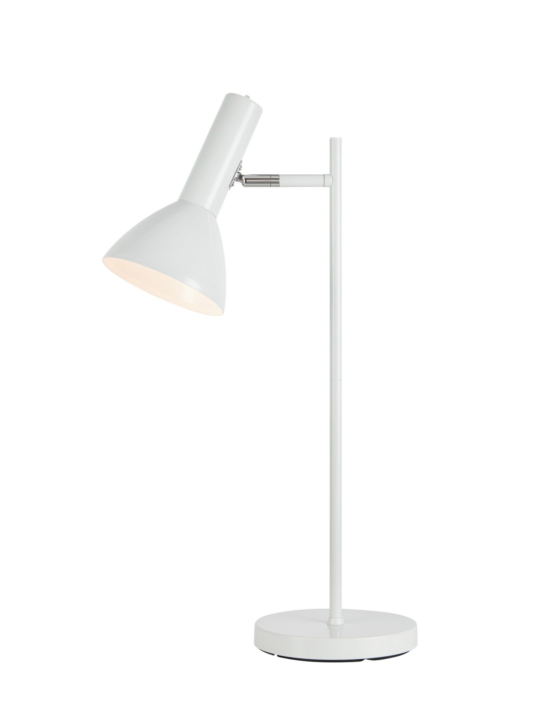 Son design épuré et sa tête ajustable en font une lampe de bureau idéale, permettant de diriger précisément le faisceau lumineux pour une lecture ou un travail confortable. Le contraste entre le blanc brillant et les touches chromées apporte une touche moderne à tout espace de travail ou coin lecture.