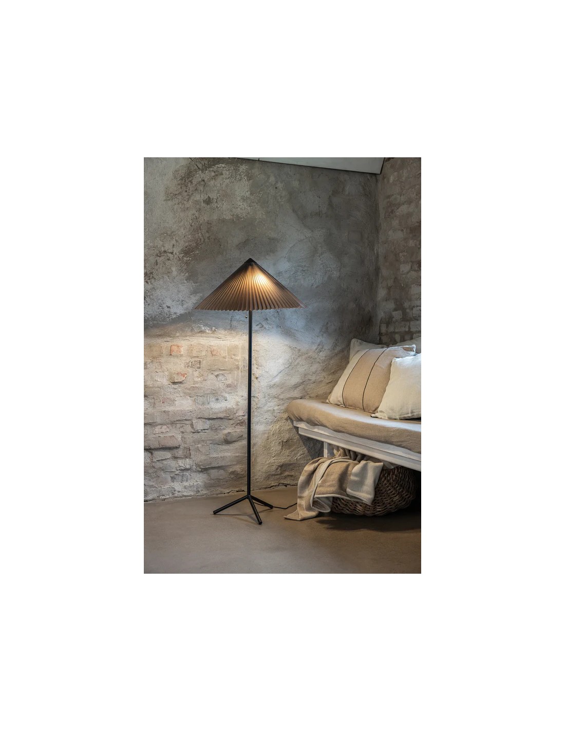 Avec son style contemporain sobre, PLISADO se distingue par la texture raffinée de son abat-jour en tissu plissé gris. Sa silhouette élancée et son piètement trépied en métal noir lui donnent une présence visuelle élégante, idéale dans un salon, près d’un canapé ou d’un fauteuil de lecture.