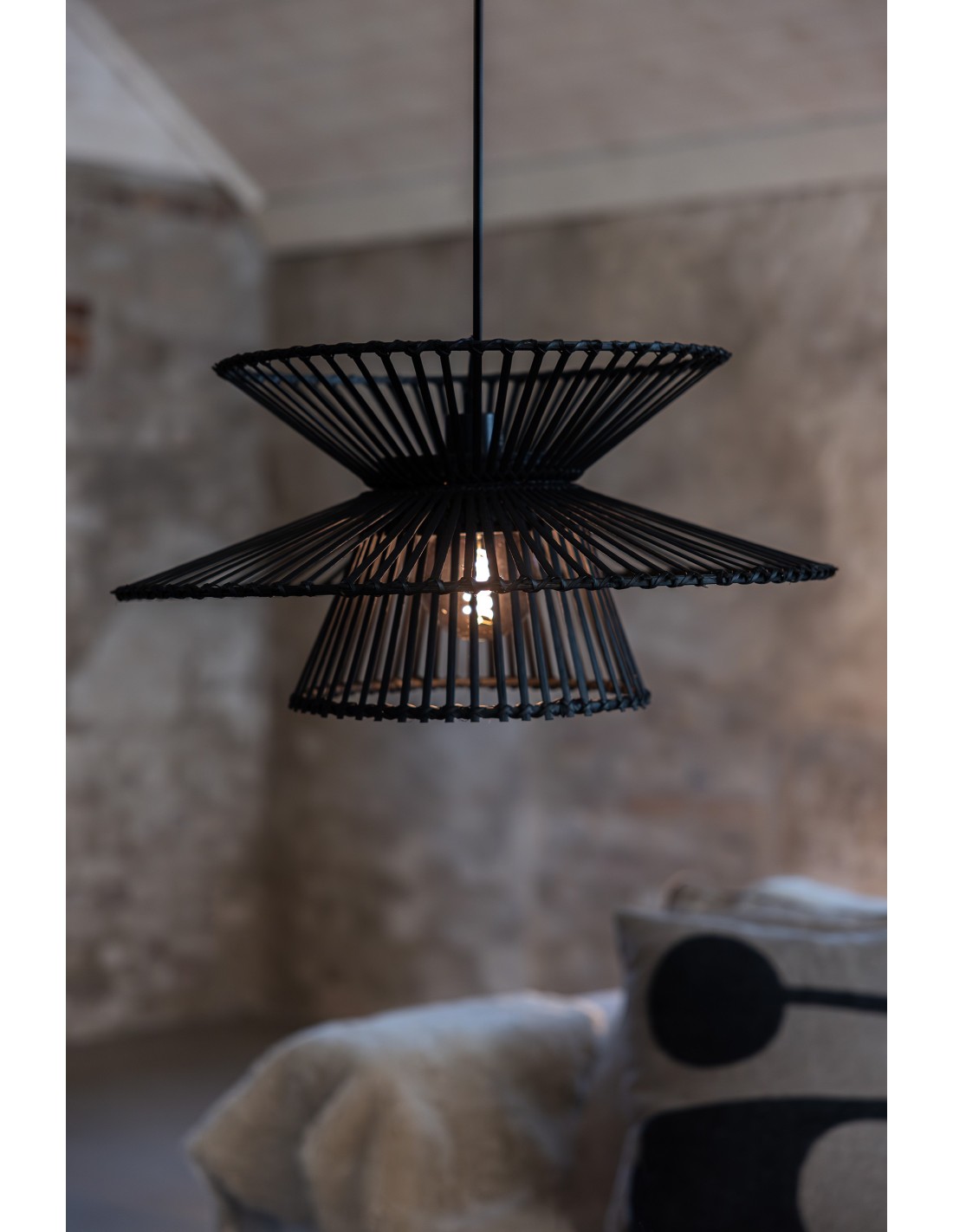 Le vrai + : jeu d’ombres saisissant grâce à l’abat-jour en bambou noir mat aux formes variées