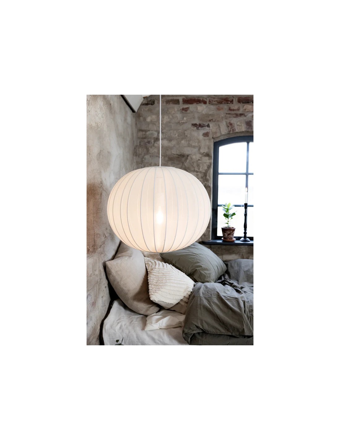 La Suspension Florence blanche de Markslöjd séduit par son design rond et son abat-jour en textile blanc, qui crée une atmosphère lumineuse apaisante. Elle est parfaite pour sublimer un salon, une chambre ou toute pièce à vivre.