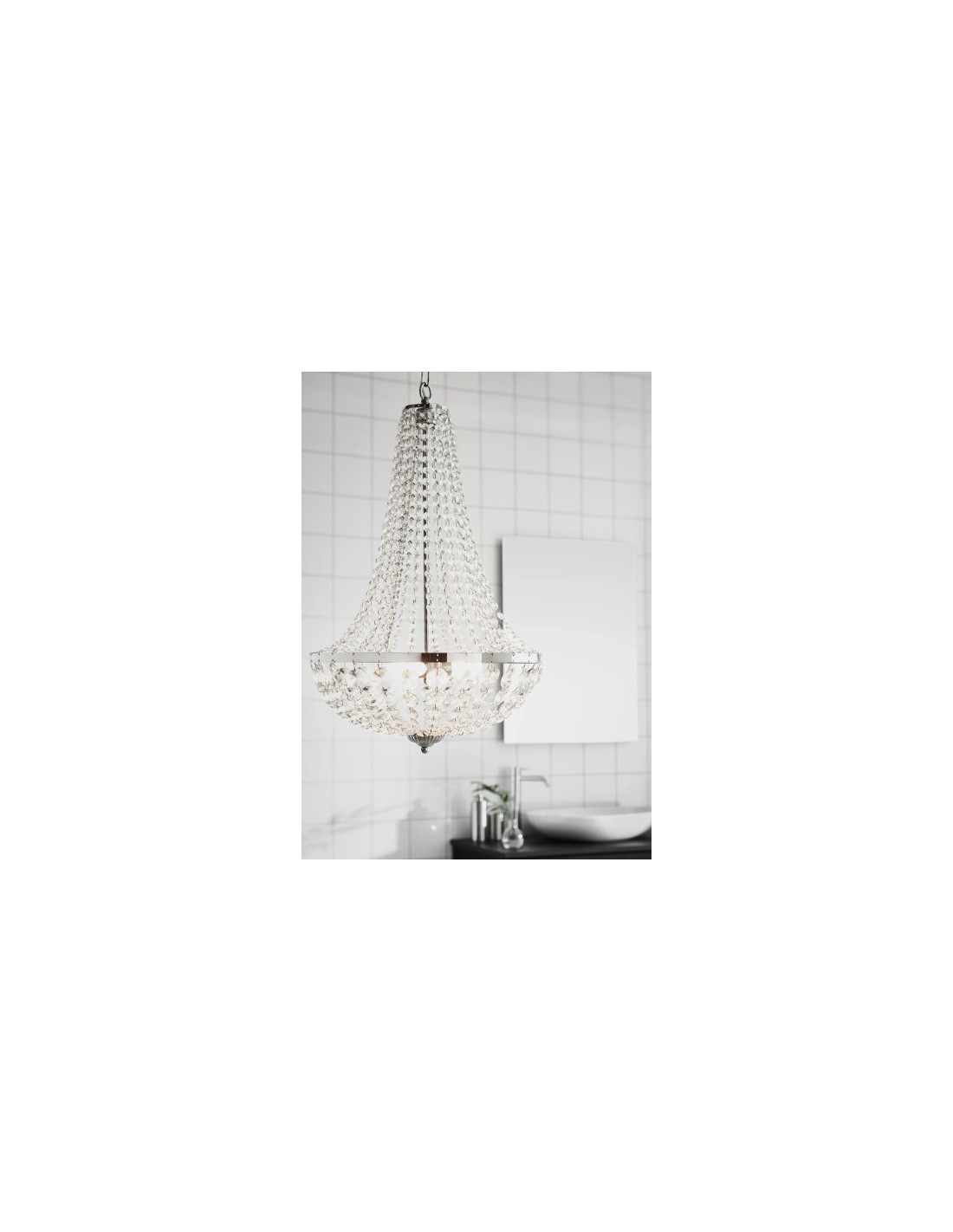 Grâce à son design sobre et luxueux, le lustre Gränsö apporte une touche de glamour tout en restant fonctionnel et résistant à l’humidité.