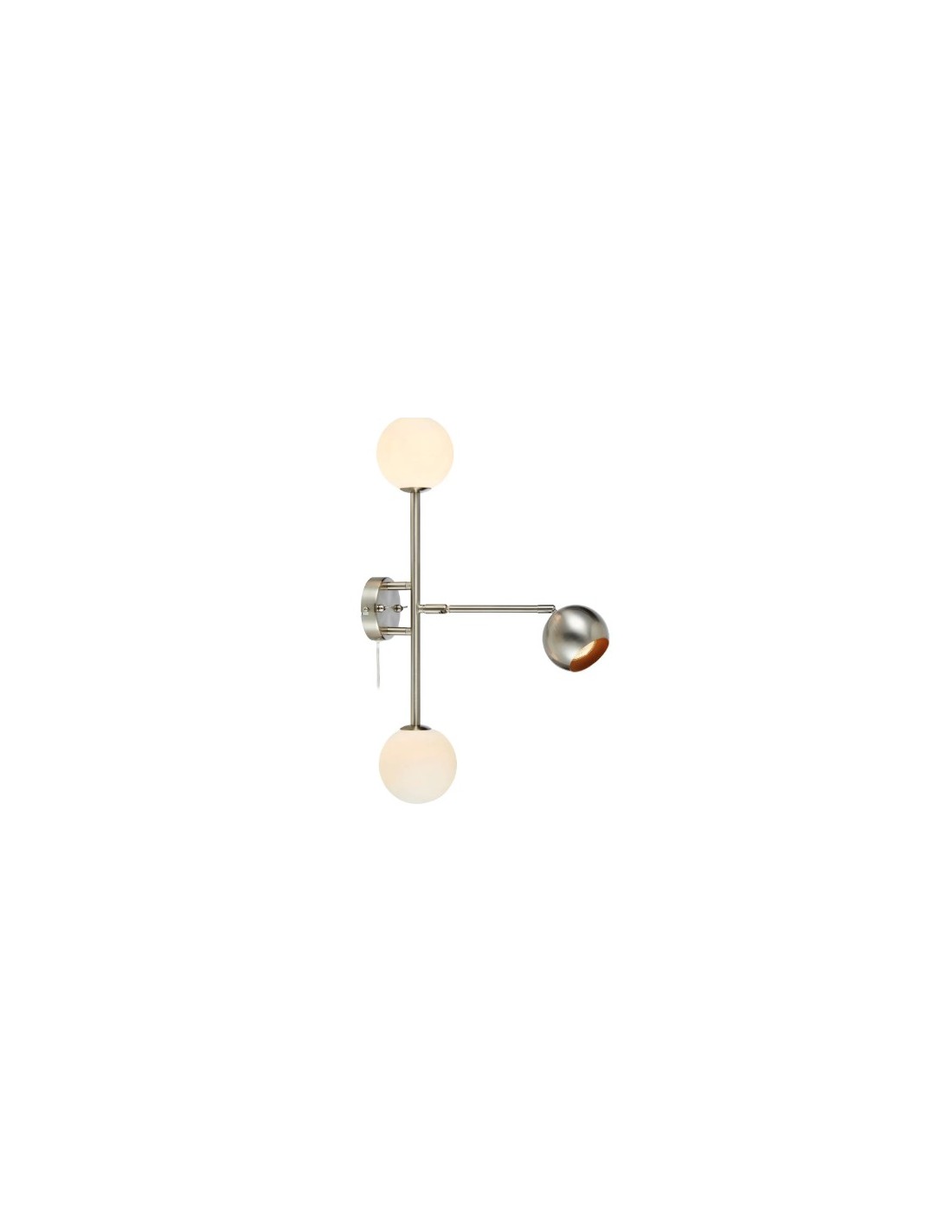 L’applique Beside allie polyvalence et efficacité avec ses trois sources lumineuses : deux ampoules G9 de 20 W max pour un éclairage d’ambiance et une GU10 de 7 W max pour la liseuse directionnelle (non incluses). Elle se fixe au mur via un support, dispose d’un câble transparent de 2 m avec interrupteur intégré à la base murale. Norme IP20, classe II.