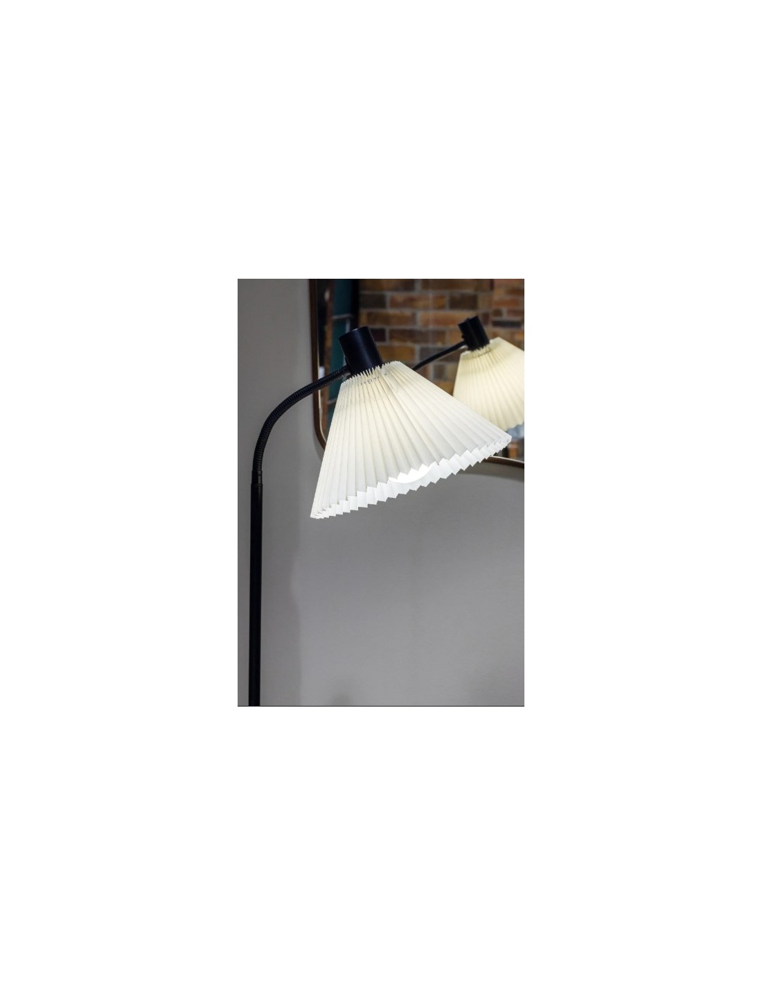 Avec son pied noir en métal et son abat-jour plissé en tissu blanc cassé, ce lampadaire combine parfaitement les codes du style classique et du design moderne.