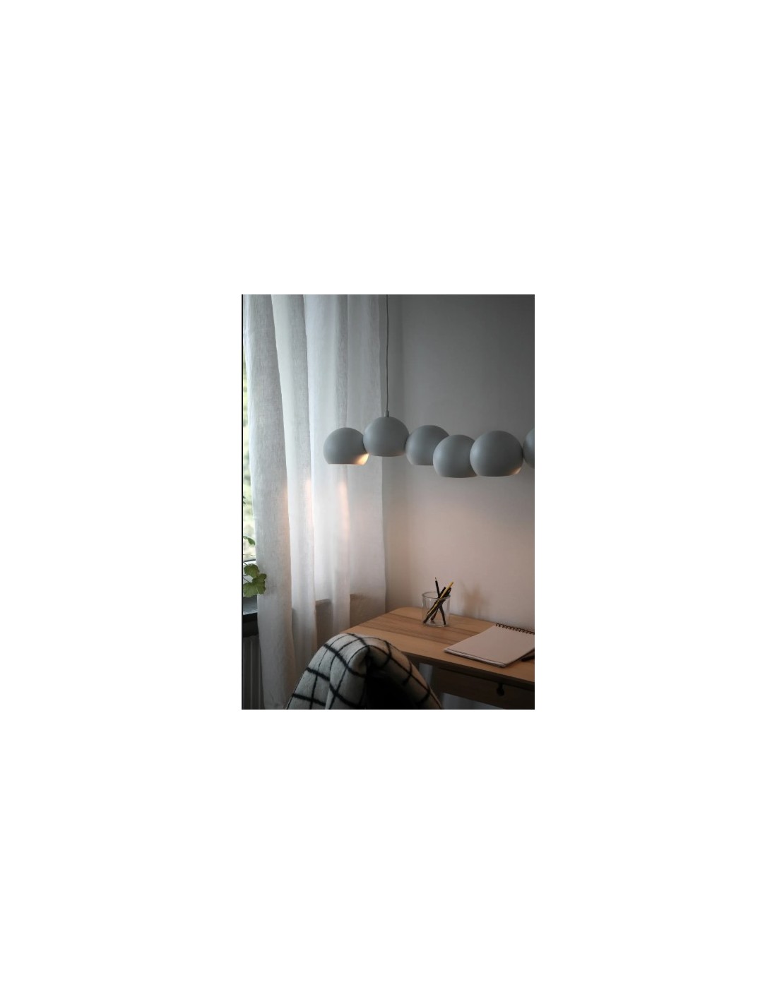 Créé par Joakim Thedin, ce plafonnier affiche un design unique avec ses sept bulles réparties sur différents niveaux, apportant une ambiance conviviale et élégante à votre espace. La suspension double support assure un équilibre parfait et une esthétique soignée, idéale au-dessus d’une table à manger ou dans un bureau moderne.